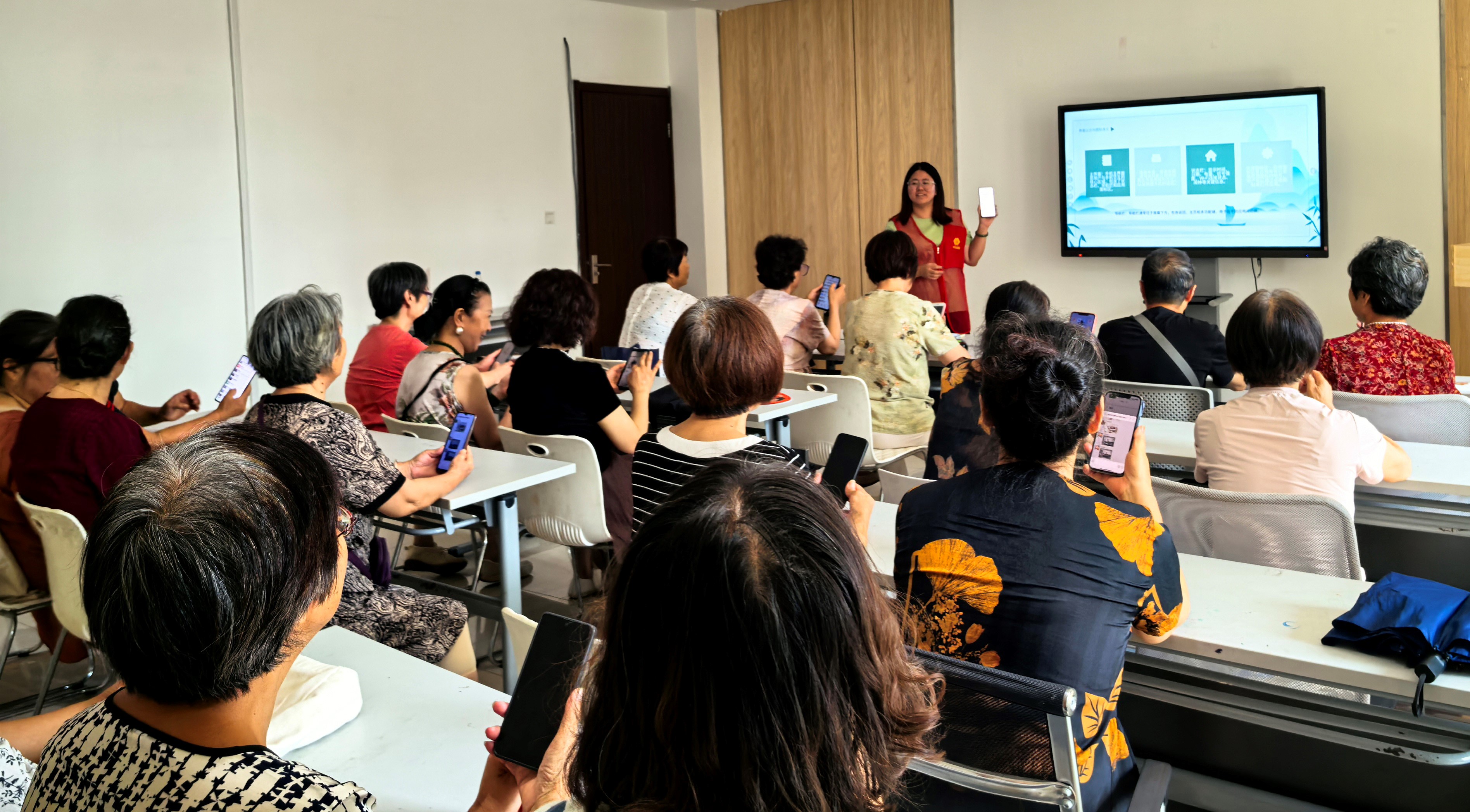 另一边的老年人智能手机使用课同样人气高涨。课程针对老年人使用手机的常见痛点,从基础的字体放大、音量调节,到实用的扫码支付、视频通话、网上挂号等功能,张玉娟老师逐一拆解操作步骤。遇到居民理解较慢的地方,张老师还会一对一帮忙演示。“以前只会用手机打电话,现在学会了用微信和外地的孙子视频,还能在网上交水电费,太方便了!”李爷爷举着手机,难掩兴奋。