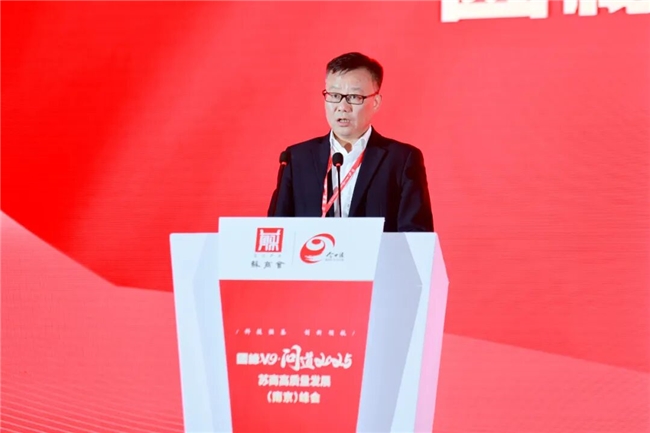 江苏零浩网络科技有限公司董事长蔣明辉在致辞中介绍了零浩网络创新发展的实践经验,并分享了三点体会:一是数字企业应扎根服务实体经济,推动技术创新向稳提效、增强企业竞争力;二是实体企业要主动拥抱数字化、AI与绿色发展,让现代服务业成为企业“左膀右臂”,实现双业态融合共治;三是企业须立足长远,紧扣“十五五”战略导向,研判行业周期,将自身发展融入国家战略。他呼吁广大苏商以党的二十届四中全会精神为指引,以此次峰会为契机,加强合作,凝聚合力,共同谱写苏商高质量发展的新篇章。