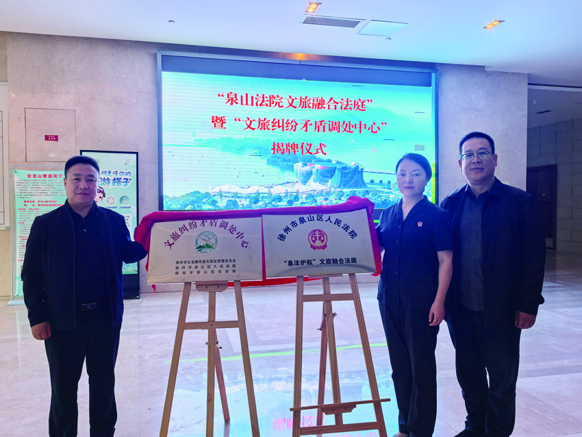 江南时报讯 近日,徐州市云龙湖旅游景区游客服务中心前气氛热烈,泉山区“文旅纠纷矛盾调处中心”与“文旅融合法庭”揭牌、挂牌仪式在此举行。