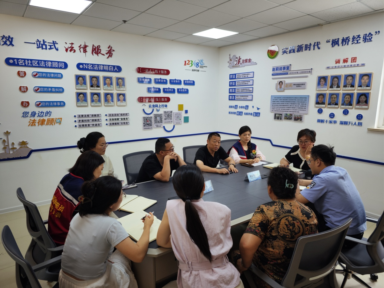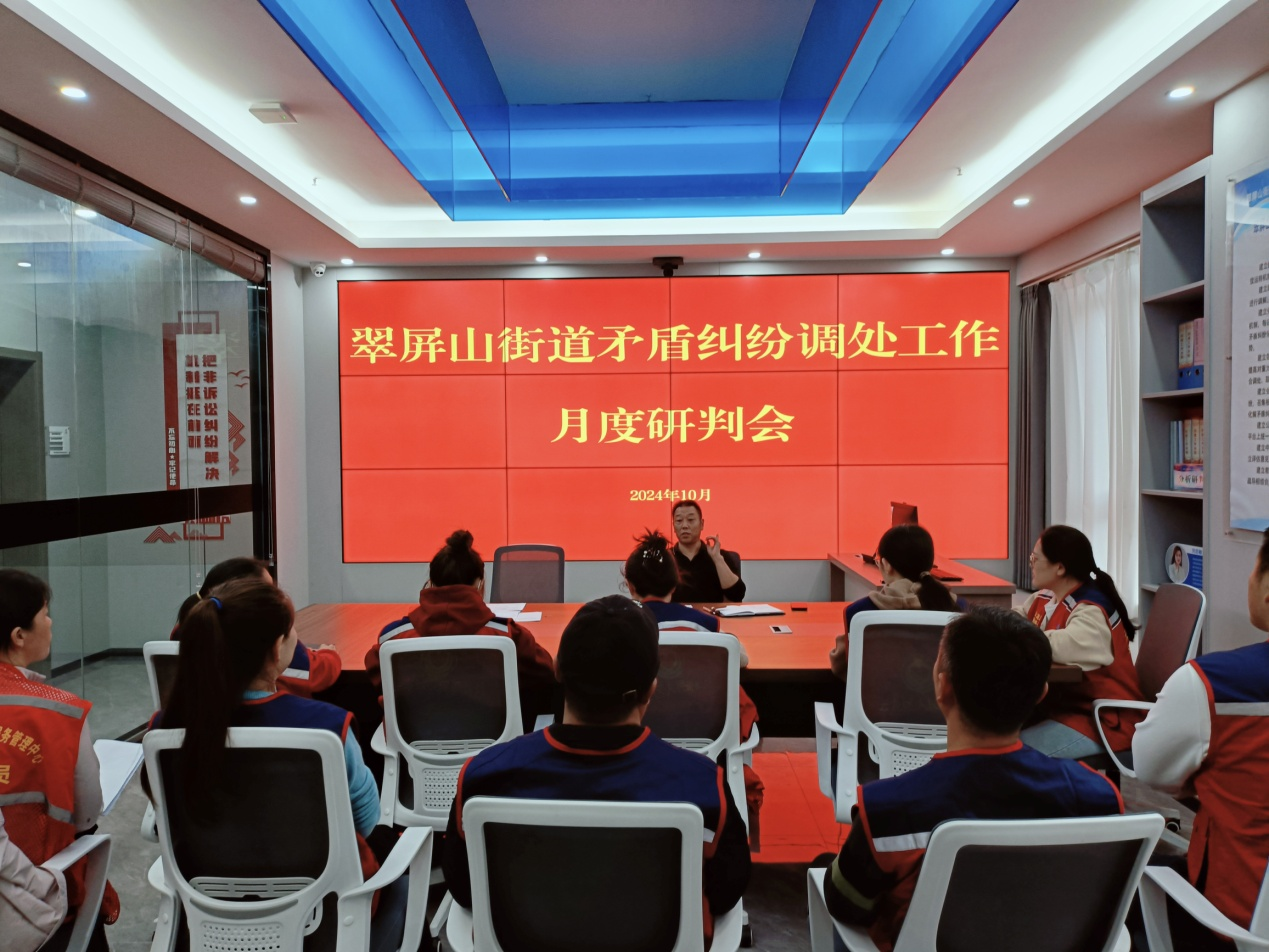 二是力量融合,组建“专业化+本土化”解纷联盟。与综治中心联合组建“法治荟翠”联动队伍,整合司法所干警、街道法律顾问、专职调解员、网格员、社区“法律明白人”等多方力量,形成“专业指导+一线摸排+快速响应”的解纷链条。一方面,司法所发挥法治专业优势,为矛盾调解提供法律依据、文书指导和司法确认支持;另一方面,综治中心依托网格员“人熟、地熟、情况熟”的特点,第一时间收集矛盾线索,实现“信息秒达、服务上门”。例如,针对物业纠纷频发问题,联合推动“庭所共建”,与云龙区法院共建区级物业纠纷联合调处中心,法官定期驻点指导,调解员前置化解,律师参与释法,形成“调解+司法确认”闭环。