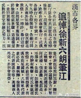 《新华日报》1938年8月28日报道“汉市各界追悼徐新六胡笔江”
