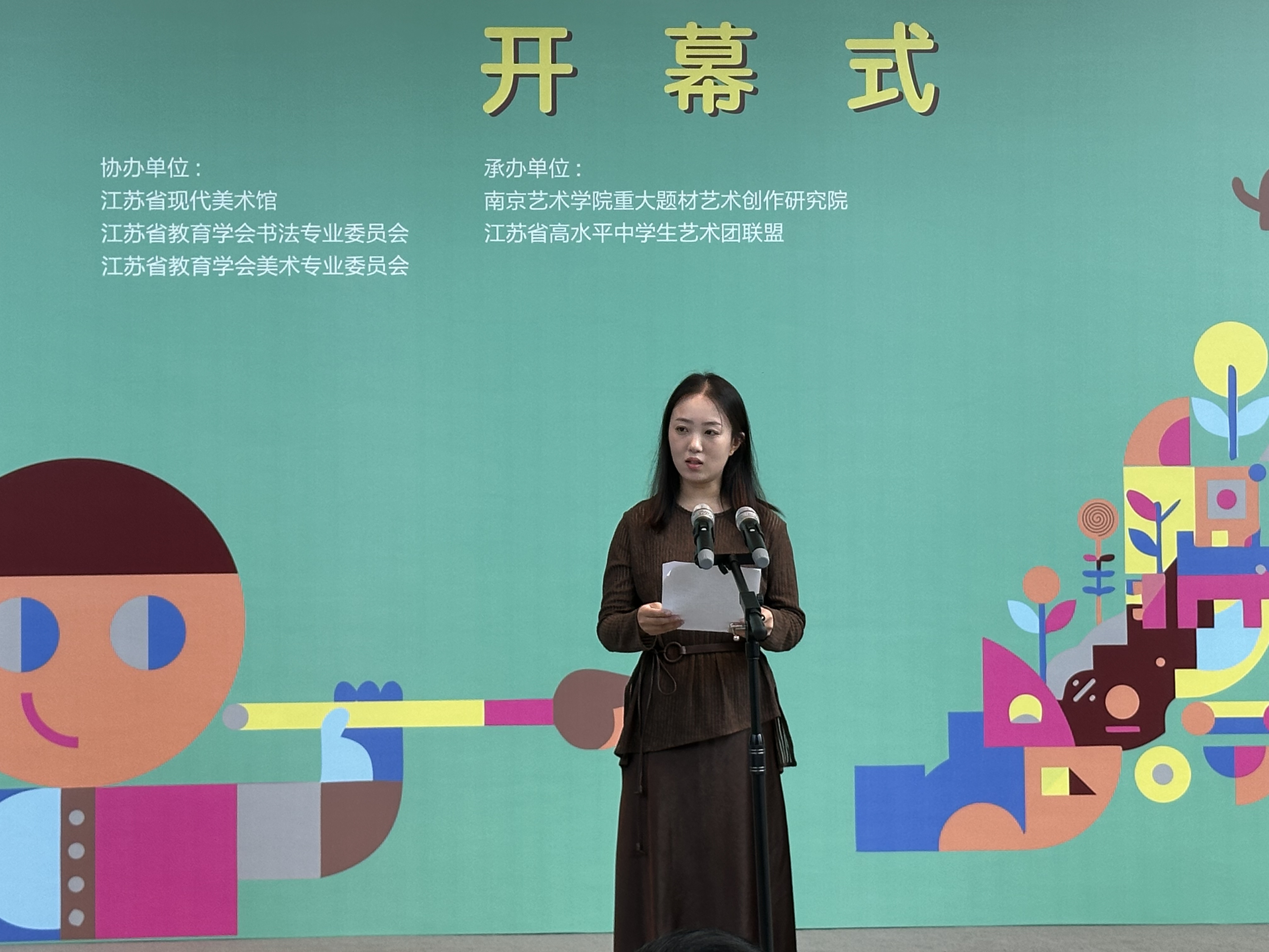 我是来自南京市金陵中学附属小学的美术老师刘梦彤,非常荣幸能作为指导教师代表,在“笔墨春风正少年”江苏省第一届中小学生书画作品展的开幕式上发言。
