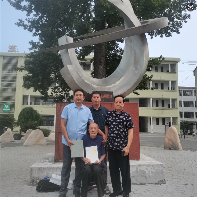 扶百岁恩师回母校参观,夙愿以偿,乐何如之。初中时之恩师,仅游老健在,师生相聚于母校,得知母校在新时期取得丰硕成果,为之骄傲,振奋不已。热爱母校,感激恩师,眷恋故乡,试以《念奴娇·与学友扶百岁恩师回母校感赋》小词一阕为记: