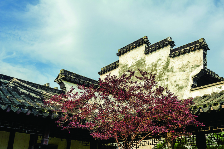 这些街道不甚宽阔,两侧粉墙黛瓦绵延相接,轻巧檐角勾勒出天空的柔婉曲线。脚下青石板经岁月打磨,光滑如镜,映着天光云影。糕点铺、茶馆、南北杂货与肉铺鳞次栉比,商旅熙攘不绝。茶馆里腾起的缕缕清芬,袅袅游弋入空,不断扩散,弥漫在街头巷尾的每个角落,温润如玉的香气回味悠长,浸透每一寸流动着的空气。街边现存的宅院多建于明清及民国时期,大多坐北朝南,房屋多为二层、局部一层的砖木结构。至于显赫之家,则多建气派非凡的四合院,四方天井,四水归堂,精致典雅,精雕细琢。其大门多为敦厚的石库门样式。