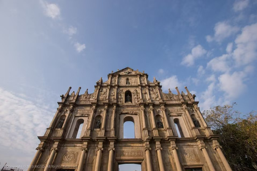[12]“三巴”:即“大三巴牌坊”,别名圣保禄大教堂遗址,位于花王堂区炮台山下,始建于明万历三十年(1602),于清道光十五年(1835)1月26日被大火焚毁,仅余大三巴牌坊。大三巴牌坊的雕刻和镶嵌精细,为多元文化交融的艺术品,代表天主教艺术在远东的成就,深刻反映澳门东西文化和谐共存的特征。