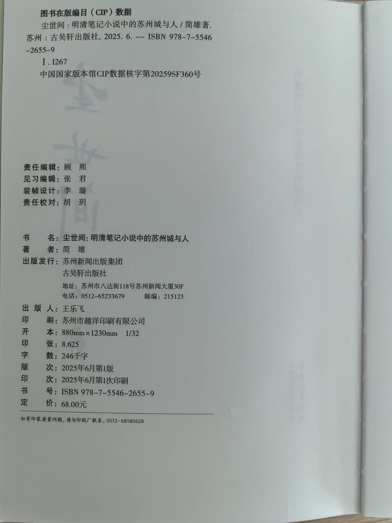 掩卷而思,书名重又吸引我。尘世间比人世间更空灵,思想更豁达,表达更文学。我想起李商隐《北青萝》的最后两句“世界微尘里,吾宁爱与憎。”大千世界里,万事万物都如微尘般渺小,人又何必太过执着于爱和恨啊!我没问过简雄,书名是不是受这首诗影响。我通读全书后,一种感觉更在全身弥散:躺在夏夜星空下,我如一颗芥子浮游在苏州城市历史文化长河里。