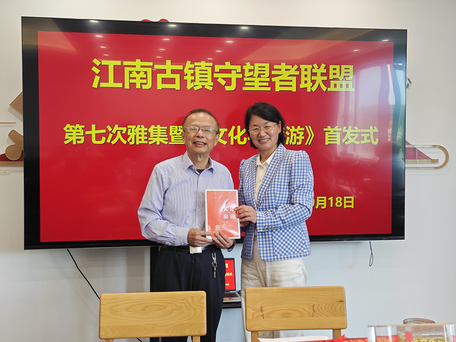 此次相聚,张胜男带来她的最新研究成果,《文化与旅游》一书,赠于古镇守望者。她表示与守望者们再次相聚,一是为了感谢江南守望者们的大力支持和帮助,让她顺利完成了《文化与旅游》这一研究成果,二是继续携手做好非遗保护方面的研究。她说,自与守望者们结缘,不仅学到和了解到了江南古镇文化的魅力,守望者们对家乡的那份热爱更令人动容。