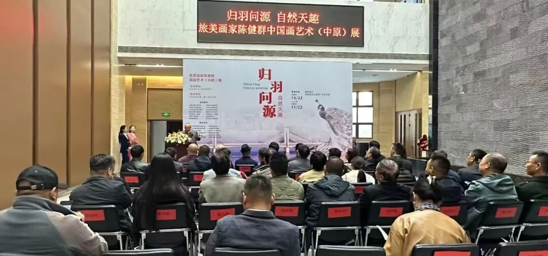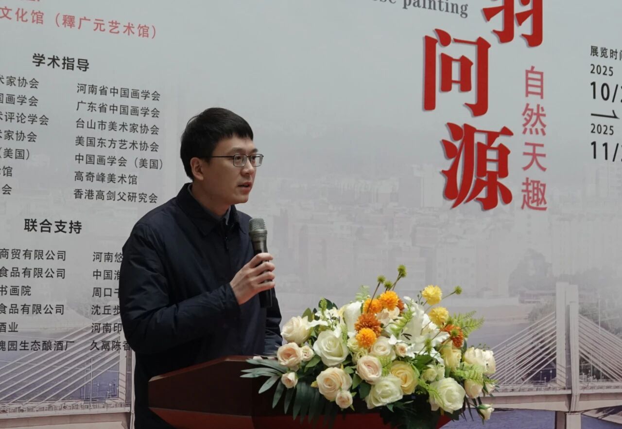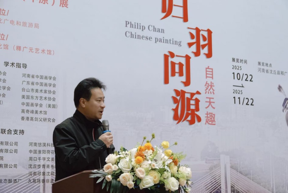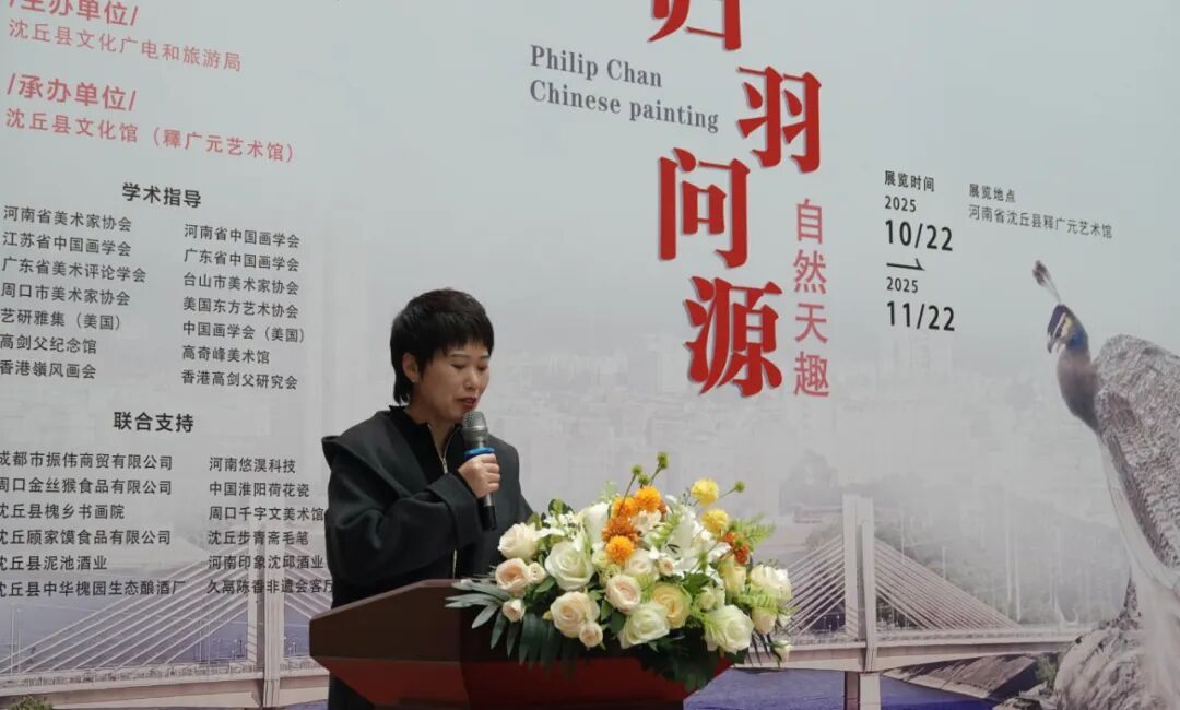 10月22日,“归羽问源·自然天趣——旅美画家陈健群中国画艺术(中原)展”在沈丘释广元艺术馆启幕。中国画学会副秘书长、江苏省中国画学会会长翟优,河南省美术家协会专职副主席陈文利,深圳市美术家协会主席陈湘波,中共沈丘县委常委、县政府党组成员龙腾,沈丘县文化广电和旅游局党组书记、局长周亚男等与美国及广东、江苏、河南多地艺术名家、企业代表、媒体记者齐聚现场,共同见证这场跨越重洋的文化活动,为金秋沈丘注入浓郁艺术气息。