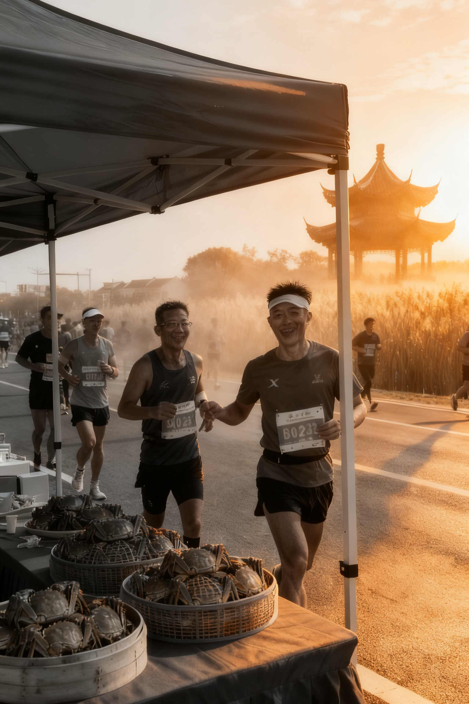 (高淳区文旅局巧借蟹香做文章,将蟹文化与慢城风光、老街古韵深度绑定。每年螃蟹节期间,占地8000余亩的水慢城摆开“千人蟹宴”,百桌宴席用的都是当天捕捞的活蟹;桠溪慢城红枫节里,炸蟹钳、蟹粉汤包成了标配;固城湖马拉松赛道旁设起“蟹王补给站”,选手跑完就能领到鲜活螃蟹。老街非遗馆推出蟹壳画、蟹绒画体验,刚买的蟹礼盒配上非遗手作,成了最具特色的伴手礼。)