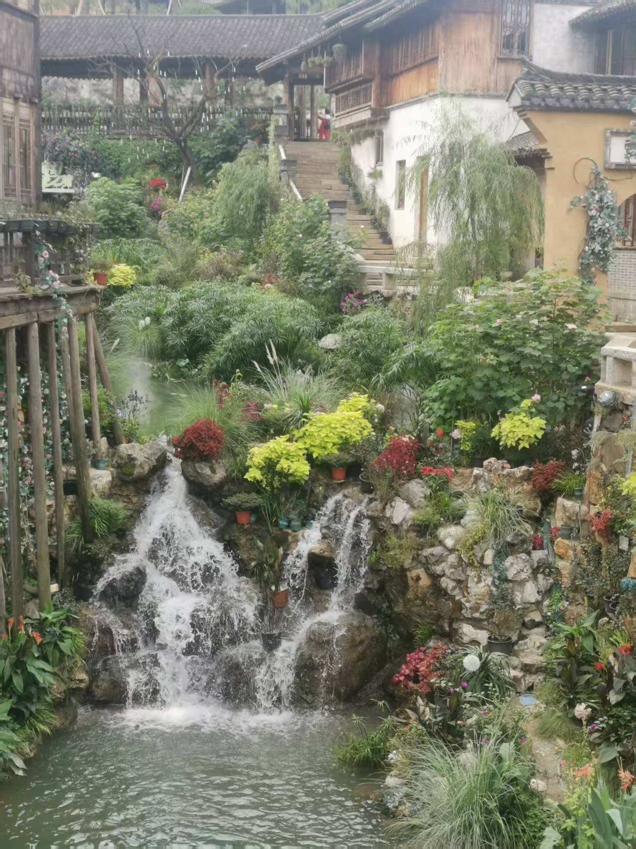 看过龙形水秀表演,我们向小镇街区出发。进入小镇需经过一座古香古色、建筑精美的春波长桥,桥廊里挂滿五颜六色的灯笼,彰显出一派欢乐祥和的气氛。站在桥上是观赏小镇湖光山色的最佳地点,小镇与湖水紧紧相连,融为一体,在蓝天白云和青山树林的映衬下,形成美不胜收的画卷。走过长桥,即是茗嶺街区,街面上布满各式各样的店铺和餐馆。我走到一家烧饼店前,被刚烤出炉香喷喷的梅干菜烧饼所吸引,忍不住买上一块解馋。我们顺着茗嶺街道散步观赏,街道两旁小溪涓涓、花木盛开,大家对这里的街道美景赞不绝口,夸赞这是一处世外桃源。