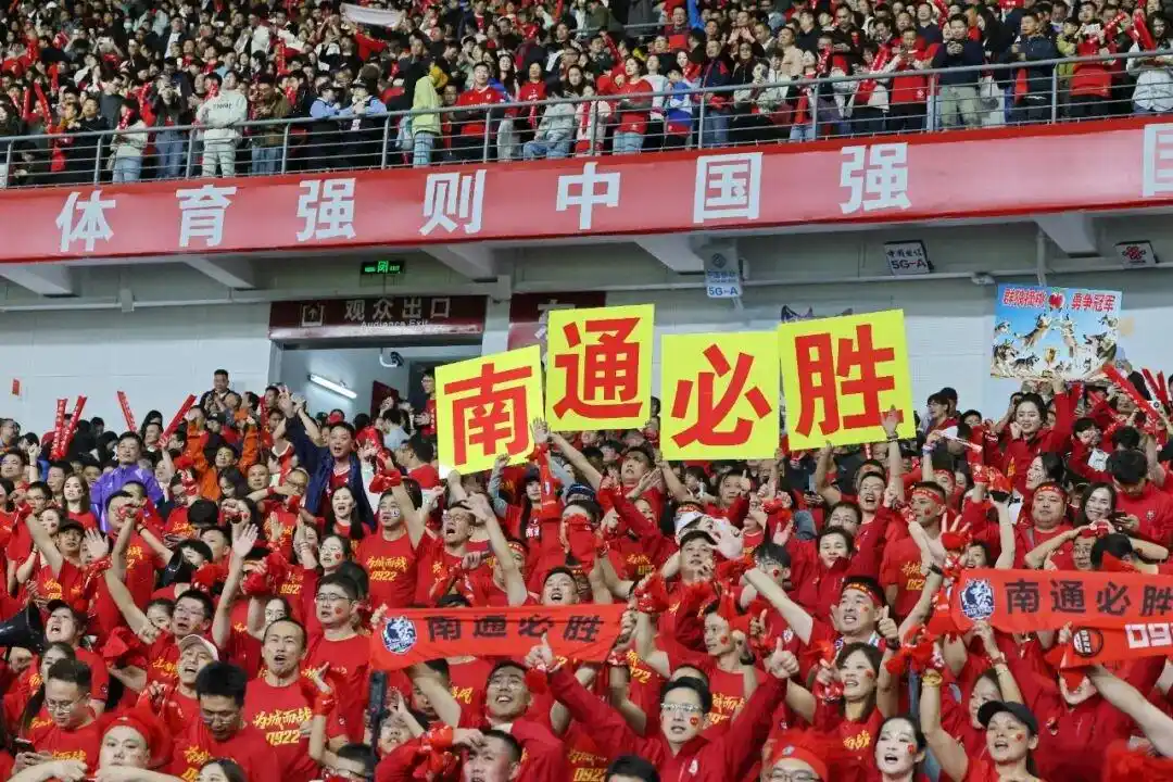 蔡天龙飞身扑出点球的瞬间,看台上的呼声差点掀翻云层;金成民跃起倒挂金钩,足球擦着门柱入网时,整条街的欢呼都裹着江风飘远;曹越涛左脚划出的落叶世界波,在空中留下一道漂亮的弧线,像把南通人的韧劲刻在了绿茵场上。 这片土地本就藏着足球的基因——中甲南通支云、中乙海门珂缔缘,两支职业俱乐部让“狼啸江海”的口号响彻赛场。看台上,那些为生计奔波的人暂时放下了忙碌:扫街的环卫工擦了擦汗,守店的小老板关掉了收银机,放学的学生攥着加油棒,所有人都朝着同一个方向呐喊。市井的烟火气与赛场的热血撞在一起,绵绵绿茵场成了梦想的孵化器:平凡与非凡在此相遇,失败与坚持在此交织,城市的认同感与归属感,也在一次次欢呼与呐喊中,汇成了南通人用群体力量搏击未来的生命叙事。原来,汗水真的能浇灌出希望;原来,素不相识的人,真的能为了同一座城,拼尽所有。