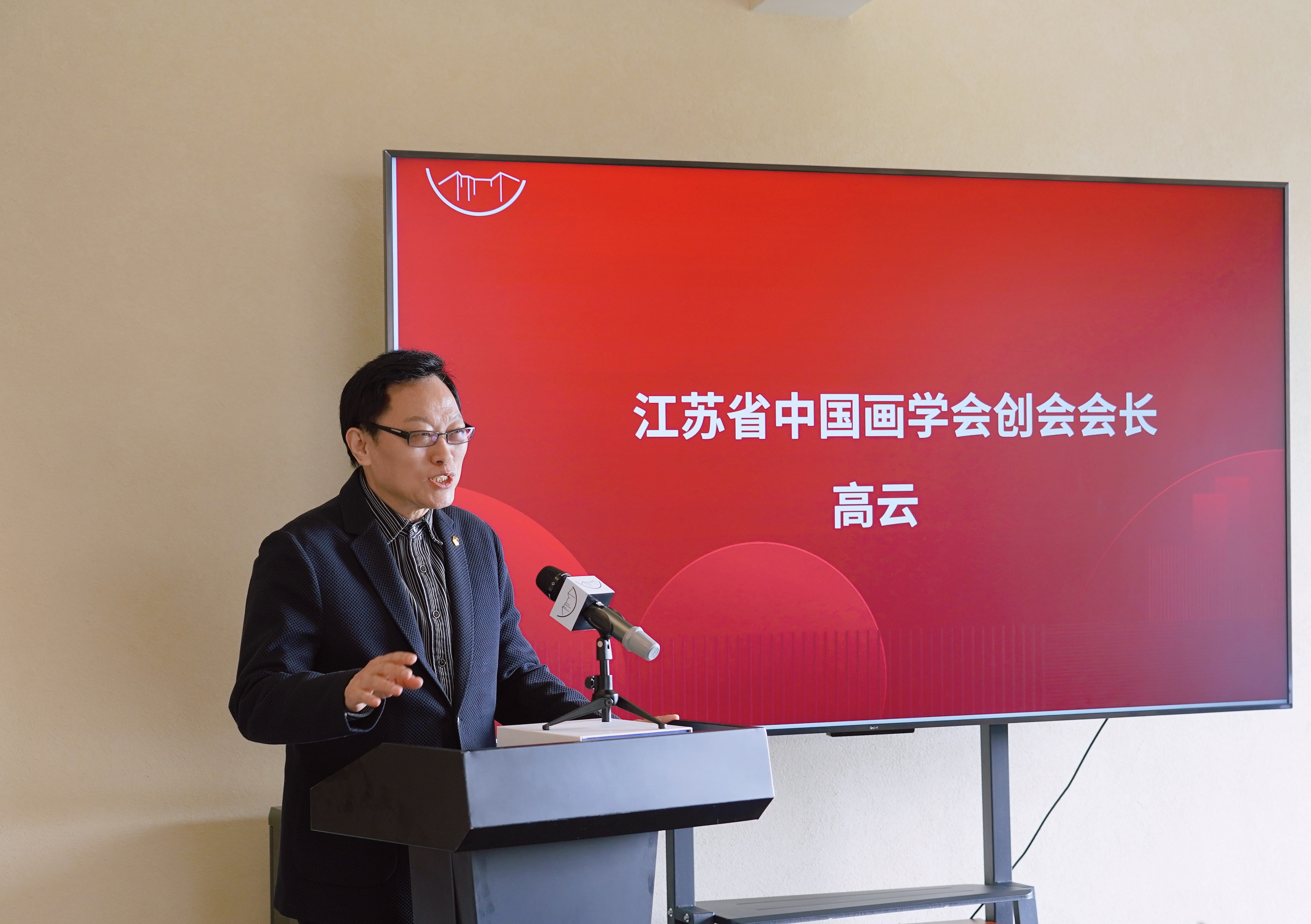 江苏省中国画学会创会会长高云结合"笔墨当随人"的理念发表讲话。他强调,艺术的生命力在于交流与创新,"笔墨当随人"既是随自我心声,也是随时代大众的审美需求,期待此次合作让中国画在国际舞台绽放更绚丽的光彩,以艺术力量促进中美民心相通。
