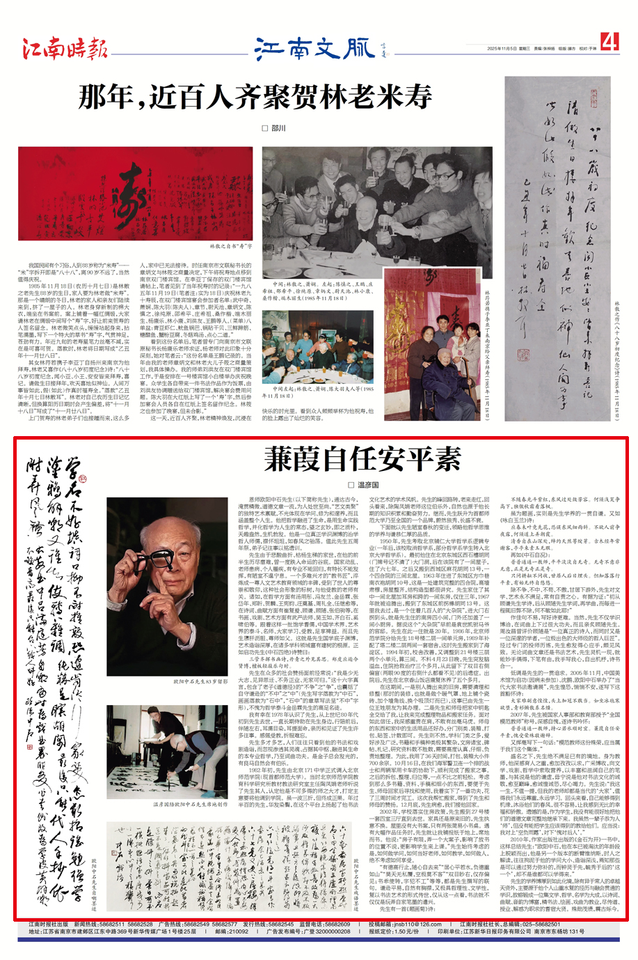 恩师欧阳中石先生(以下简称先生),通达古今,淹贯精微,道德文章一流,为人处世至尚。“艺文类聚”的独特艺术禀赋,不光体现在学问、修为和邃养,而且涵盖整个人生。他把哲学融进了生命,是用生命实践哲学,并化哲学为人生的常态,望之玄妙,即之质朴,天趣盎然,生机勃发。他是一位真正学识渊博的治学哲人师儒,襟怀坦坦,如春风之骀荡。值此先生五周年祭,弟子记往事以铭遗训。