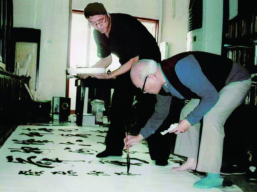 温彦国陪欧阳中石先生席地创作