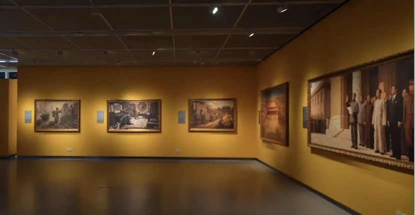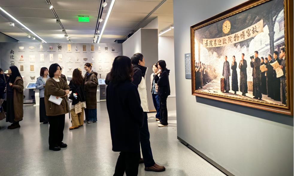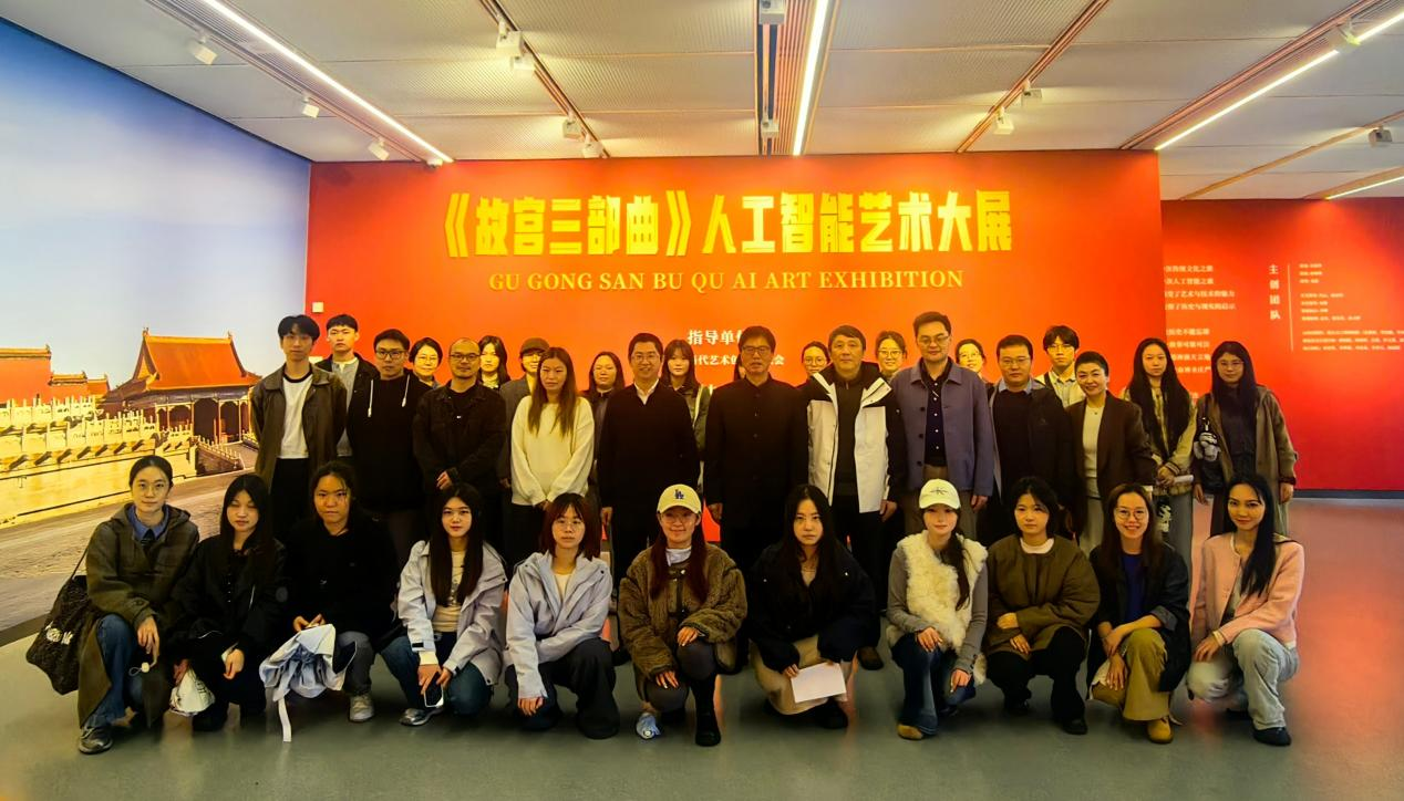 2025年11月7日,南京艺术学院美术与书法学院研究生第二党支部成员走进《故宫三部曲》人工智能艺术大展。该展览是由省文联主席、省当代艺术创作研究会会长章剑华先生根据自己撰写的近百万字的长篇纪实文学《故宫三部曲》浓缩而成的AI油画作品展;南京投石智能系统有限公司董事长孙峰峰协助章剑华先生完成了本次展览的策划与技术支持;南京艺术学院副教授冯云、杨京玲分别从油画及展陈设计专业多维度地给与配合完善,使一个艺术与数字相融合的展览从无到有的呈现给大众,并荣获2025美国缪斯设计奖金奖。