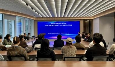 参观结束后,党支部邀请了南京投石智能系统有限公司董事长、AI艺术家孙峰峰进行交流总结。孙峰峰指出:“从产业视角出发,我们在技术与商业间做出平衡,通过选择以AI绘画模型来呈现一部百万字文学作品,以适应当前碎片化、视觉化的阅读趋势。项目初期,通用模型无法生成特定画家风格,后来在专业油画教师的指导下,修正了构图、光线等艺术难题。这证明AI目前难以替代专业人士,但其产出已能满足科普、美育及线下体验的需求。我们希望最终通过艺术与科技的融合,打造出沉浸式互动体验,探索文化传播与商业转化的新路径,同时这也印证了跨专业协作的重要作用。”南艺美术与书法学院党总支陈书记表示:“这两年学校在力推艺术与科技的融合,这对我们美院的老师和同学产生了很多触动,同时也给我们提出一个大的思路,就是我们怎么样让学生在这样一种社会大环境中找到自己的就业方向,就像刚才孙总讲的,我们美院学生要培养多方面的能力,或者说要有一专多能的综合素质,这样才能更好地适应社会。”美院第二党支部书记冯云在交流中也强调,要鼓励艺术专业学生积极拥抱AI时代,将其作为提升构图效率、激发创意的强大辅助工具,并思考如何将科技与自身专业特长相结合,以开拓更广阔的就业和发展方向。