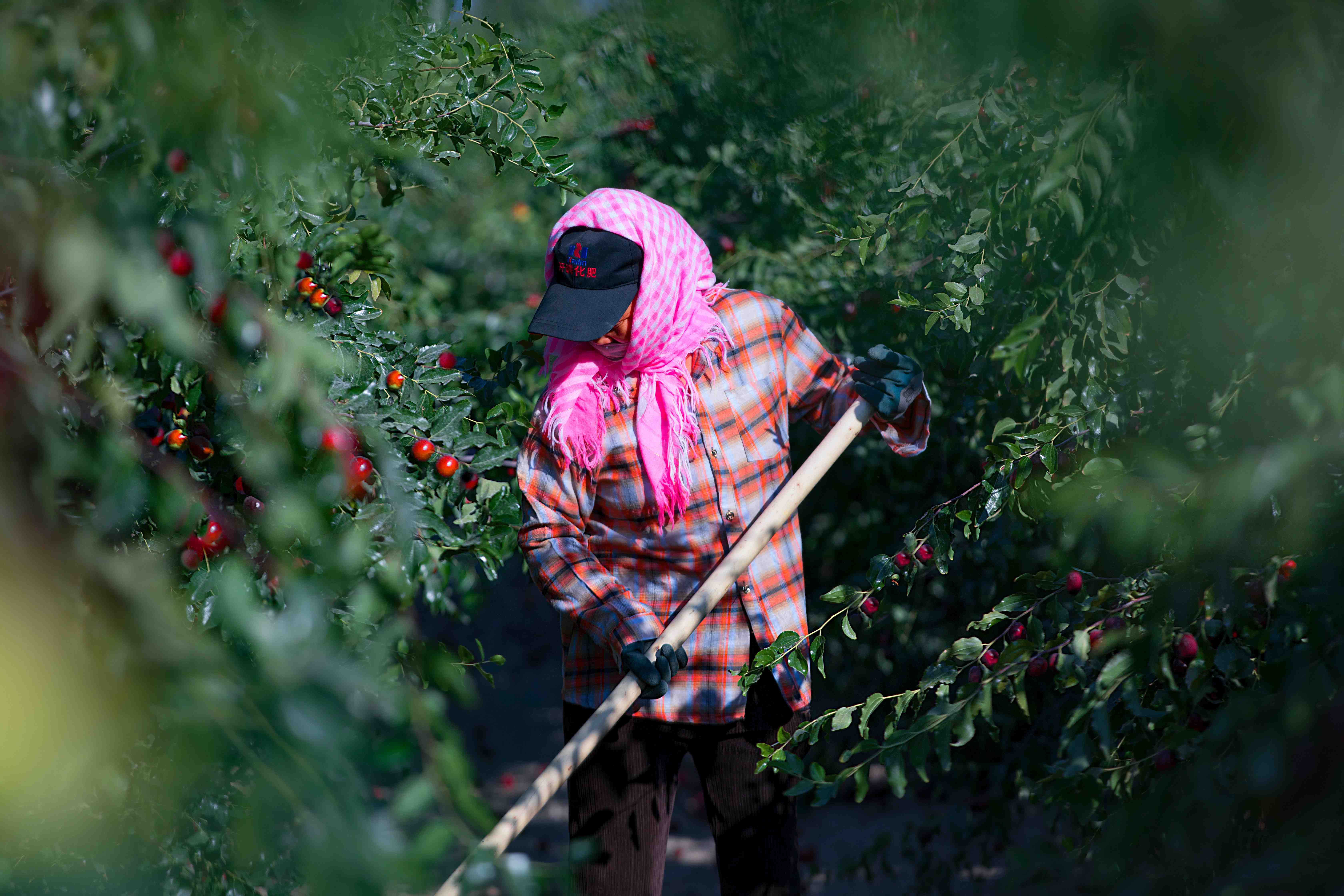 《哈密红枣沉甸甸》 在新疆兵团第十三师红星四场十连的广袤田野上,五千余亩红枣种植园蔚为壮观。沉甸甸的哈密大枣与骏枣压弯枝头,犹如红色玛瑙缀满天地。职工们穿梭其间采收丰收果实,展现着兵团现代化农业发展的辉煌成就与乡村振兴的生动实践。(吉龙生 摄)