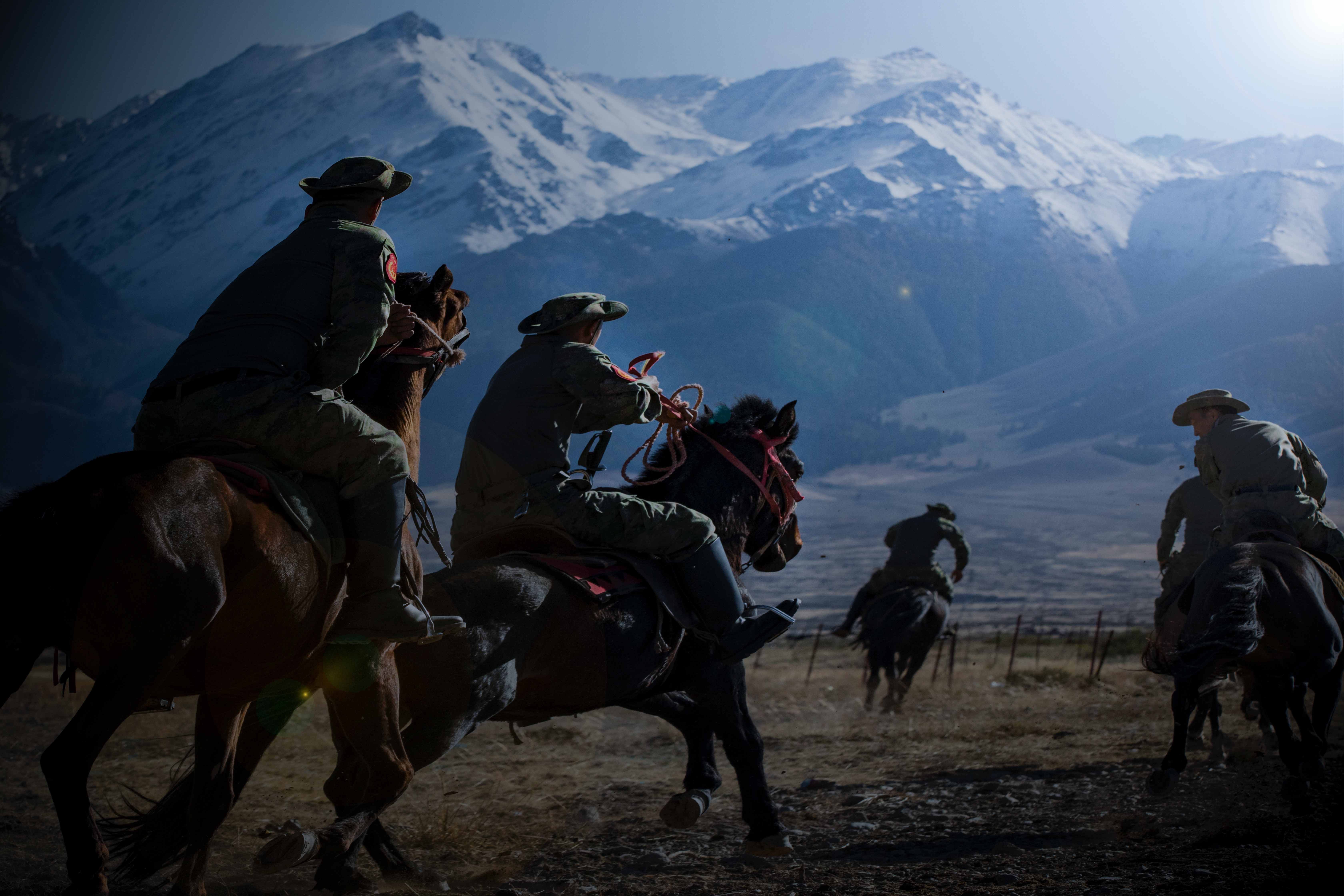 《天山脚下练兵忙》 战马嘶鸣,兵团第十三师红山农场的民兵在训练场上挥洒汗水。作为红山农场的民兵,他既是基层治理的守护者,也是危急关头抢险救灾的逆行者。从日常巡逻到应急处突,将“兵”的责任扛在肩头,用忠诚与担当,在边疆大地上书写着新时代兵团民兵的风采。(吉龙生 摄)