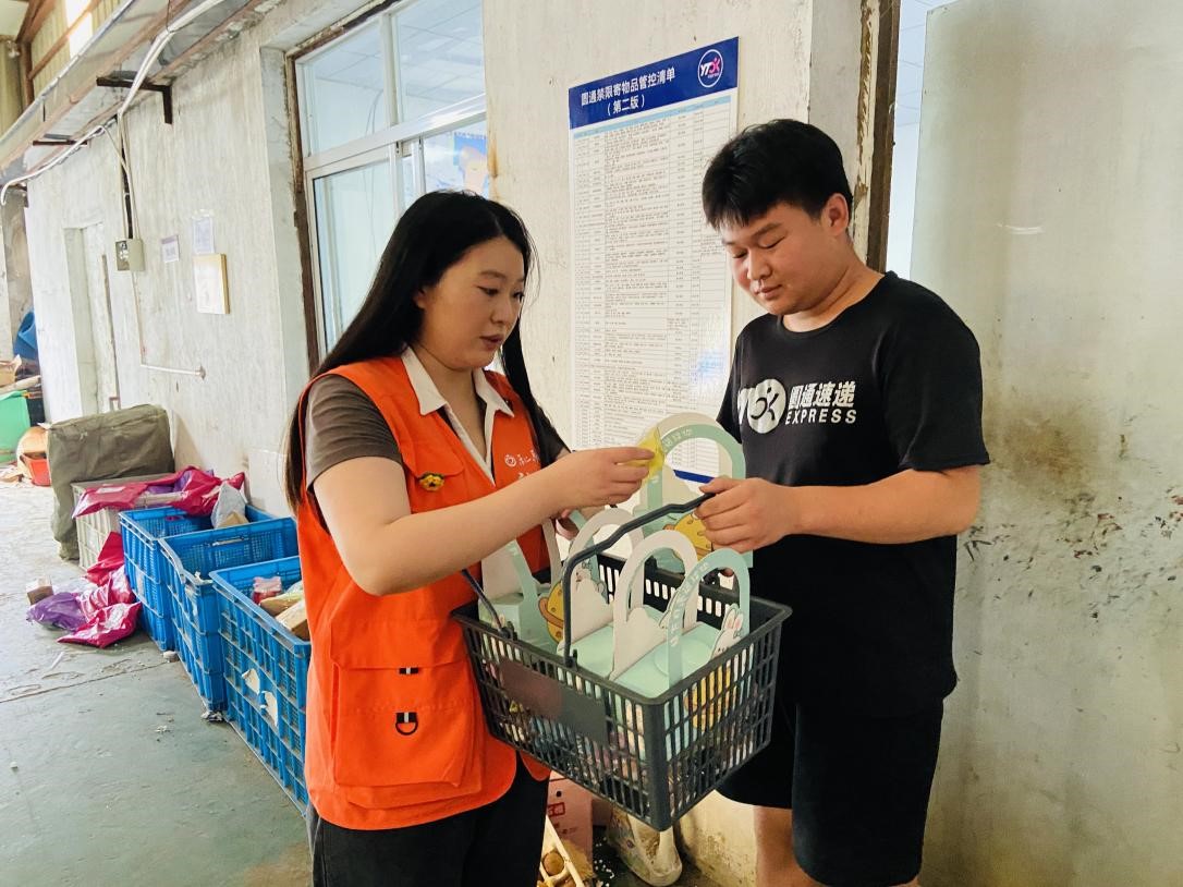 江南时报讯 为向坚守岗位的辖区快递小哥们传递节日温暖,弘扬传统文化,苏州市相城区渭塘镇骑河村组织工作人员、志愿者走进辖区快递驿站,为新业态新就业群体送上节日的祝福与慰问,共度温馨中秋。