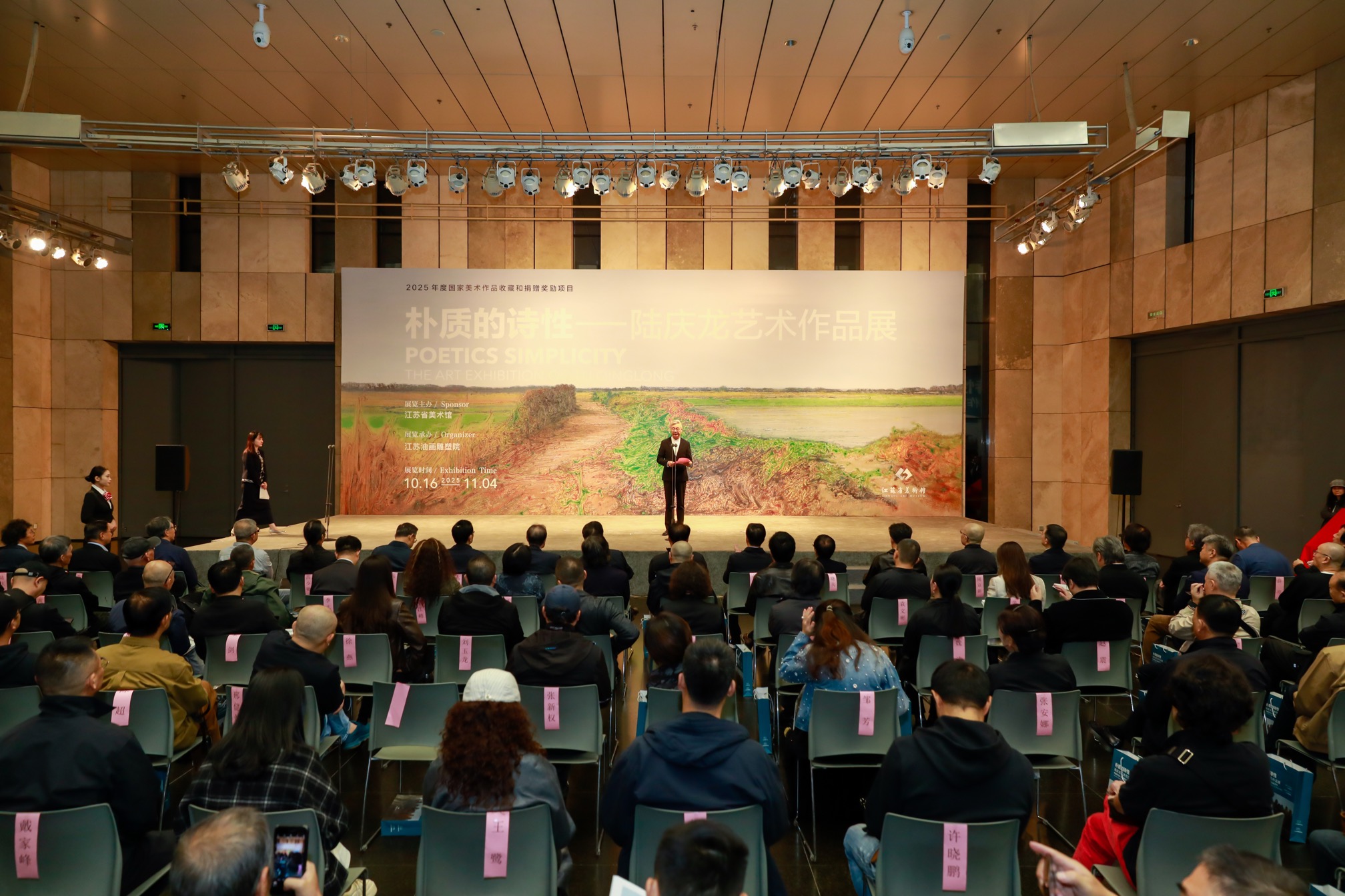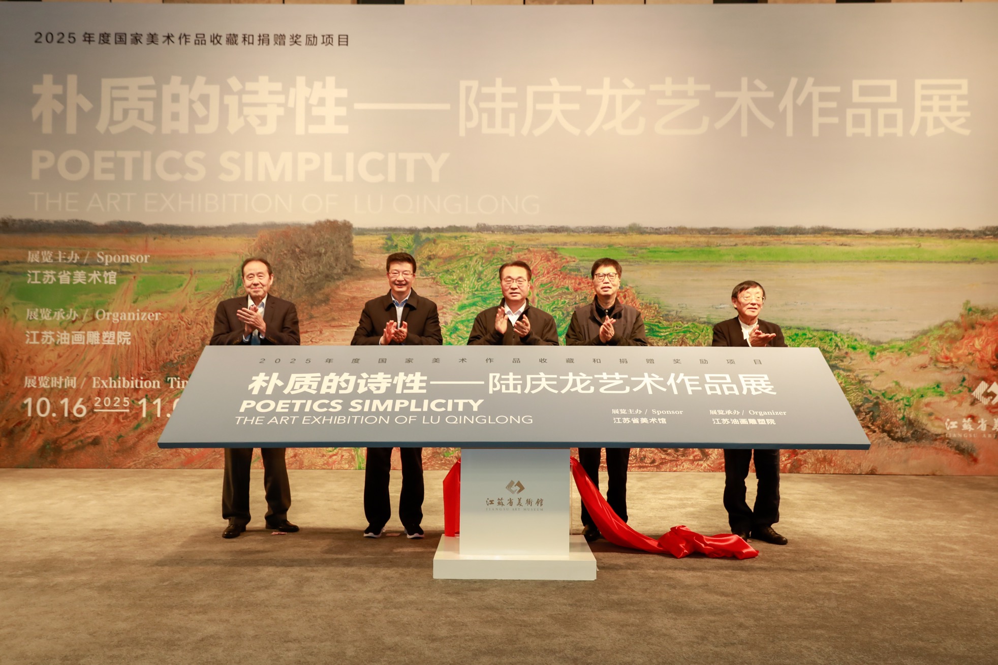10月19日,由江苏省美术馆主办、江苏油画雕塑院承办的文化和旅游部2025年度国家美术作品收藏和捐赠奖励项目“朴质的诗性——陆庆龙艺术作品展”在江苏省美术馆开幕。