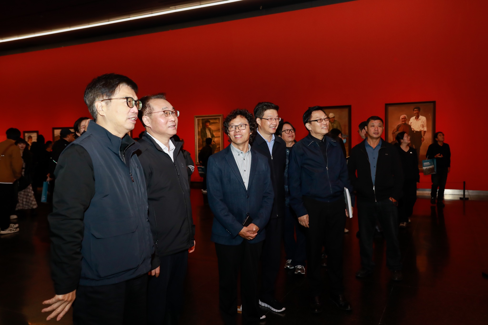 江苏省文化和旅游厅党组书记、厅长杨志纯,江苏省文联主席、省当代艺术创作研究会会长章剑华,江苏省政协副秘书长、民进江苏省委专职副主委余珽,上海师范大学美术学院原院长、上海油雕院原副院长、中国美协国家重大题材美术创作委员会委员俞晓夫,南京艺术学院原副院长、江苏省油画学会名誉主席沈行工为展览揭幕。第十四届全国政协副秘书长、民盟中央专职副主席吴为山,中国美术家协会主席范迪安发来贺信,祝贺展览成功开幕。江苏省文联副主席、江苏省国画院原院长周京新,中国美协油画艺委会副主任、浙江省美协副主席、中国美院绘画艺术学院原院长何红舟,南京艺术学院原副院长、江苏省油画学会名誉主席沈行工,江苏省美术馆党总支书记、馆长王法先后致辞。同时颁发了收藏证书和江苏油雕院名誉院长聘书。开幕式由江苏省美术馆副馆长陈岚主持。