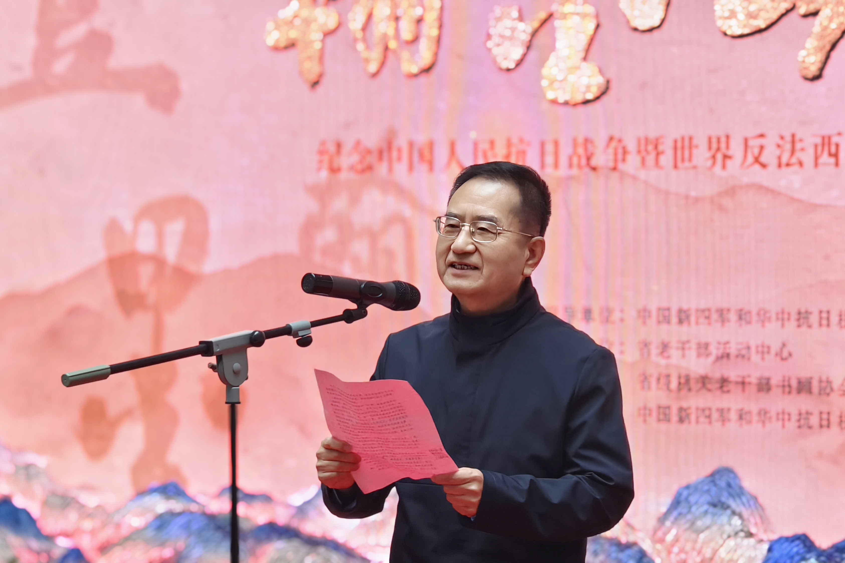 展览由省级机关老干部书画协会与中国新四军和华中抗日根据地研究会铁军书画社共同筹备。开幕式由省级机关老干部书画协会会长于洪军主持。