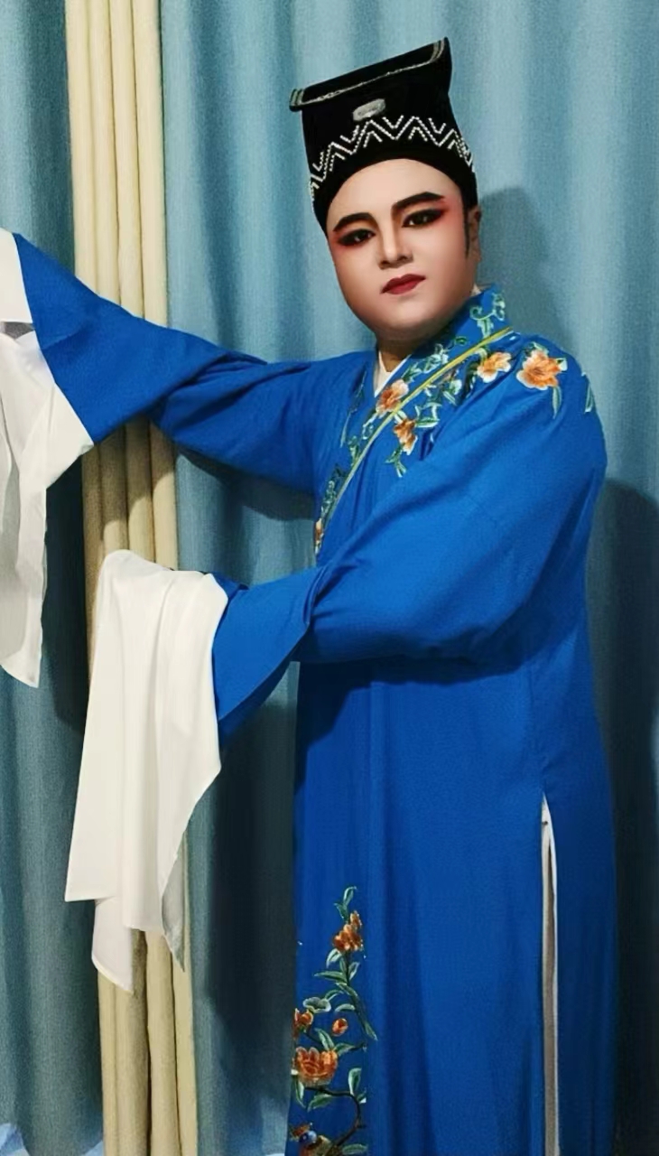 田政,男,师从连云港市淮海剧团、国家二级演员、国家级非遗“淮海戏”的唯一省级传承人霍一君。