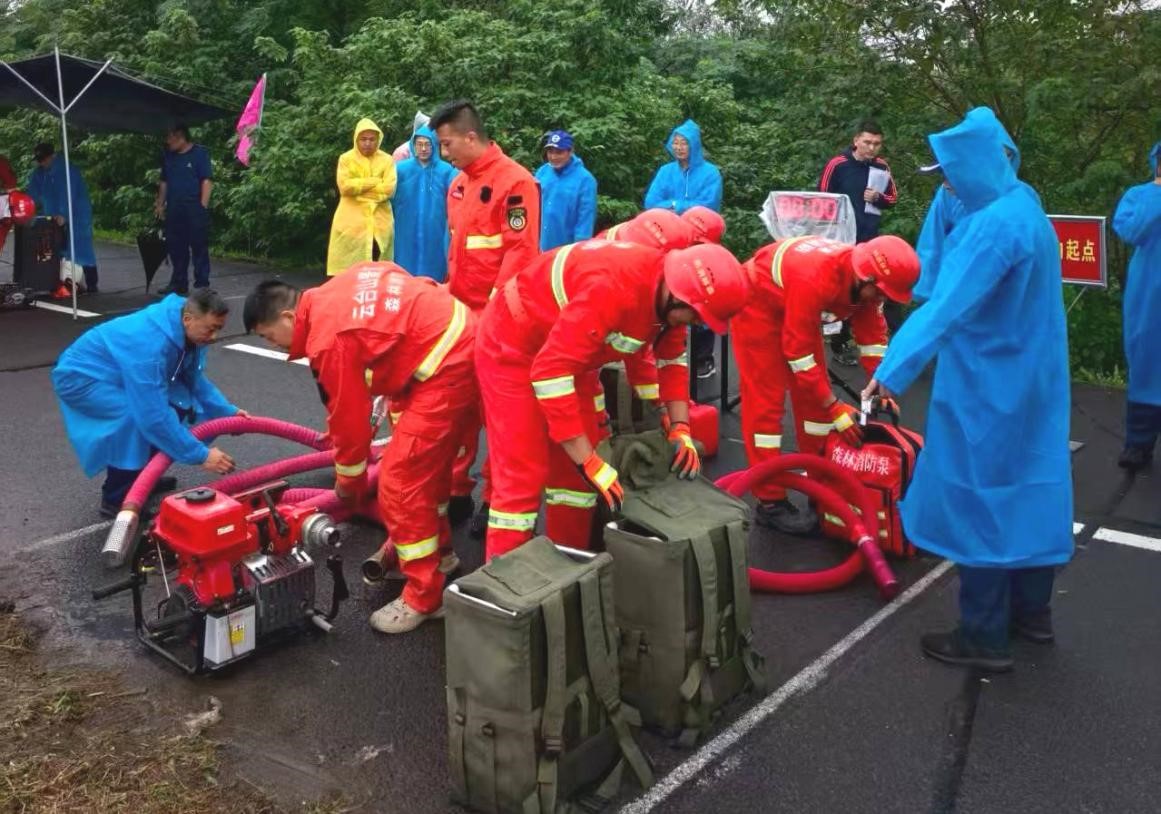 本次技能竞赛项目包括理论考试、灭火弹投掷、负重越野、水泵接力、火灾综合扑救、风力灭火机协作、油锯切割等课目。赛场上,队员们身手矫健、配合默契,灭火弹划出精准弧线,水泵接力水龙疾射,负重越野步伐铿锵……每个动作都展现着平日训练的扎实功底。