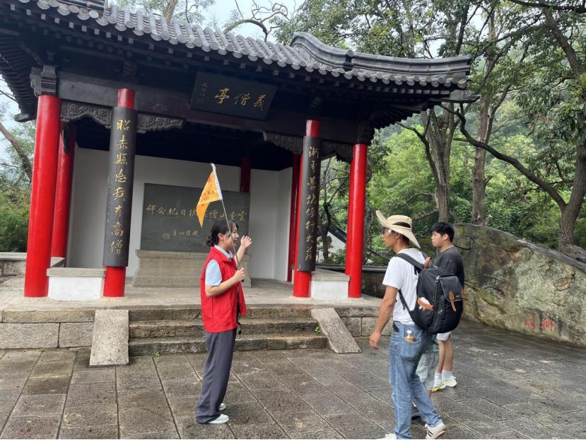 近日,连云港市云台山景区在花果山开展“强国复兴有我,传承红色基因”主题志愿服务活动。活动以红色文化为主线,融合讲解、情景互动与沉浸体验,将历史现场转化为生动课堂,为游客带来一场别开生面的爱国主义教育之旅,也让抗战精神在文旅融合中焕发新的时代光芒。