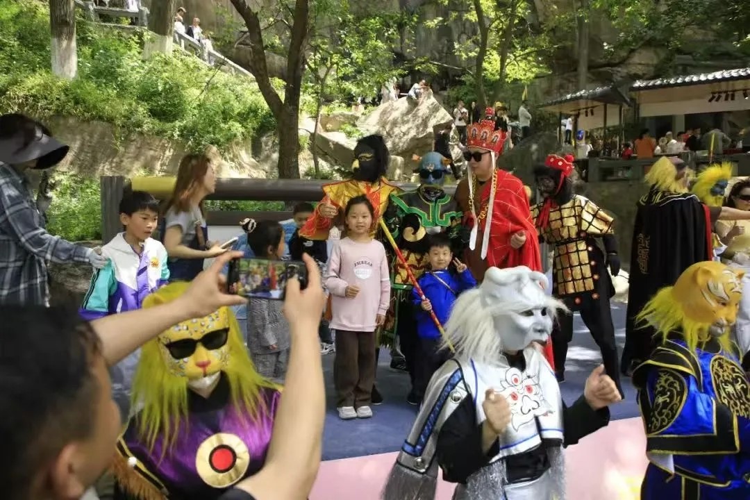 花果山景区立足文旅融合新风口,依托整个山地走势和科学点位,划分了“游客中心演出区”“玉女峰演出区”“怪石园互动区”“水帘洞沉浸区”等四大互动区域,游客可参与西游神魔巡游、快闪、《三打白骨精》情景剧等互动环节。渔湾景区则分白场和夜场,晚上主打“团圆火锅宴”和“梦幻渔湾”演出,边吃火锅边赏月边看演出;白天主打“萌宠马戏总动员”“溯溪飞拉达”竞技,还有奇幻乐园和潮玩运动馆的“宝藏内容”。