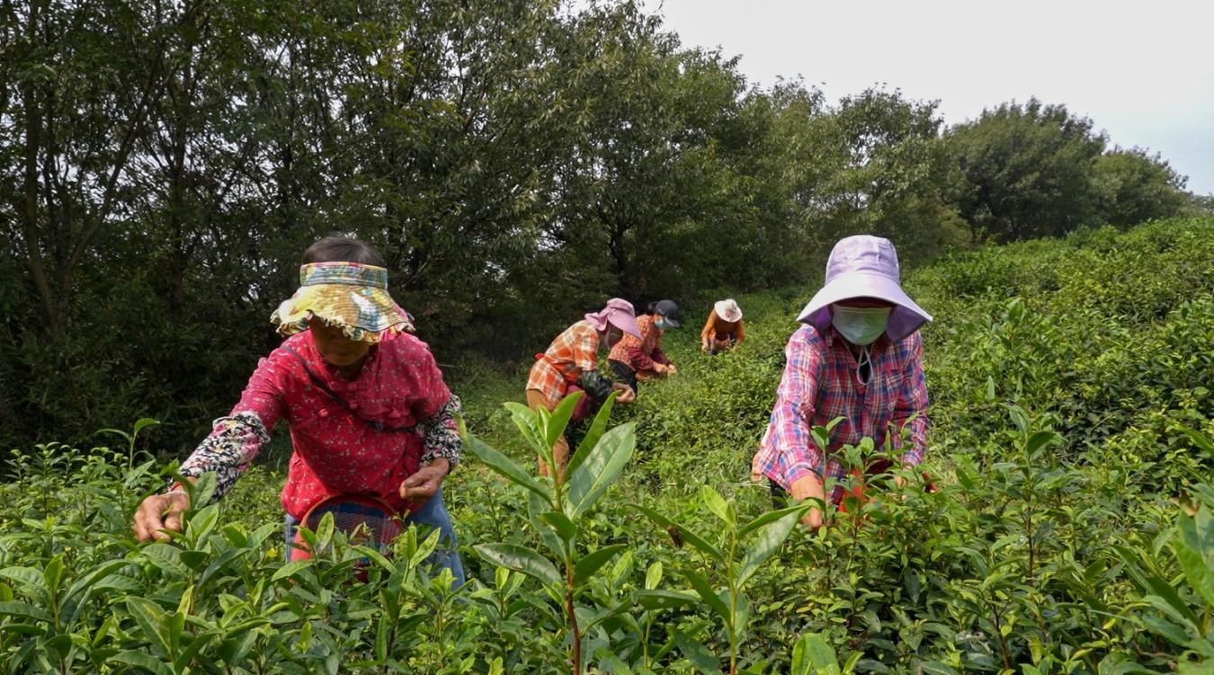“寒露后的秋茶吸足山海灵气,香气比春茶更浓郁!”茶农张大姐一边将一芽一叶的鲜叶收入竹篓,一边介绍采茶的讲究——只选芽头饱满、叶片鲜活的鲜叶,制成一斤干茶需采摘六七万个芽头。采茶季里,她和伙伴们日均采鲜叶3斤左右,日收入达200元,茶园成为增收“宝地”。