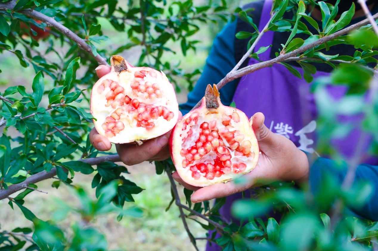 这份丰收的喜悦,是云水湾立足生态本底、精心谱写的 “四季歌”中,最鲜活的秋日篇章。园区围绕“春赏花海、夏憩荷塘、秋摘果实、冬趣农园”的四季景观定位,不仅培育了石榴、柿子,更种植了桑葚、葡萄、鲜桃、甜梨、番茄、甜瓜等多种生态作物,其中7类产品荣获国家绿色食品认证,“云台农庄”品牌更成功入选中国农垦品牌目录,特色农业品牌的底色愈发鲜亮。