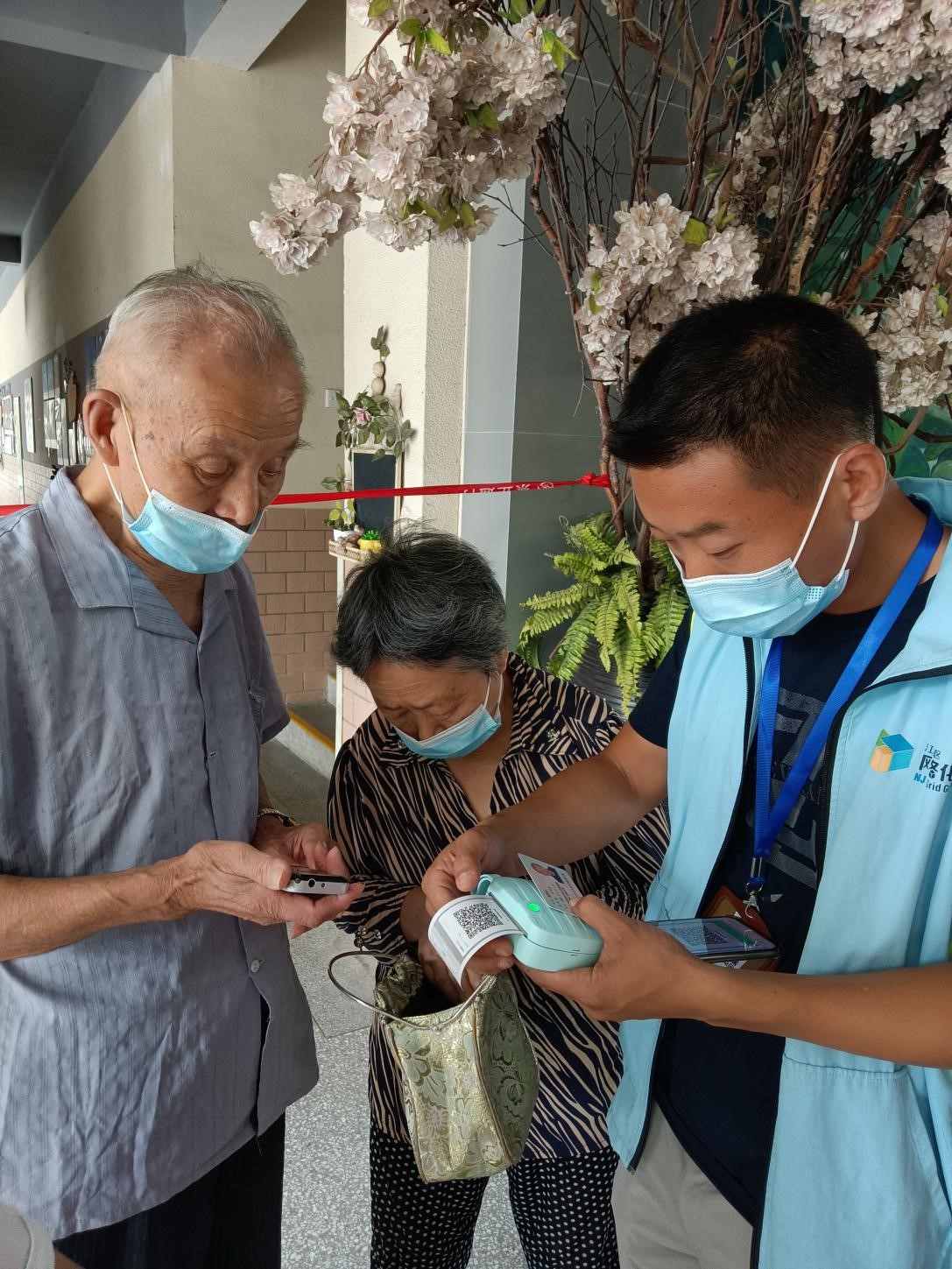 在复兴、新化社区核酸检测点中,有不少老人手拿一张纸质二维码走到检测点登记。原来在第一轮核酸检测时,不少老人不会用智能手机,虽然都是工作人员帮忙登记的,但在采样登记时需要扫描二维码,工作人员必须点对点跟着老人直到登记采样。