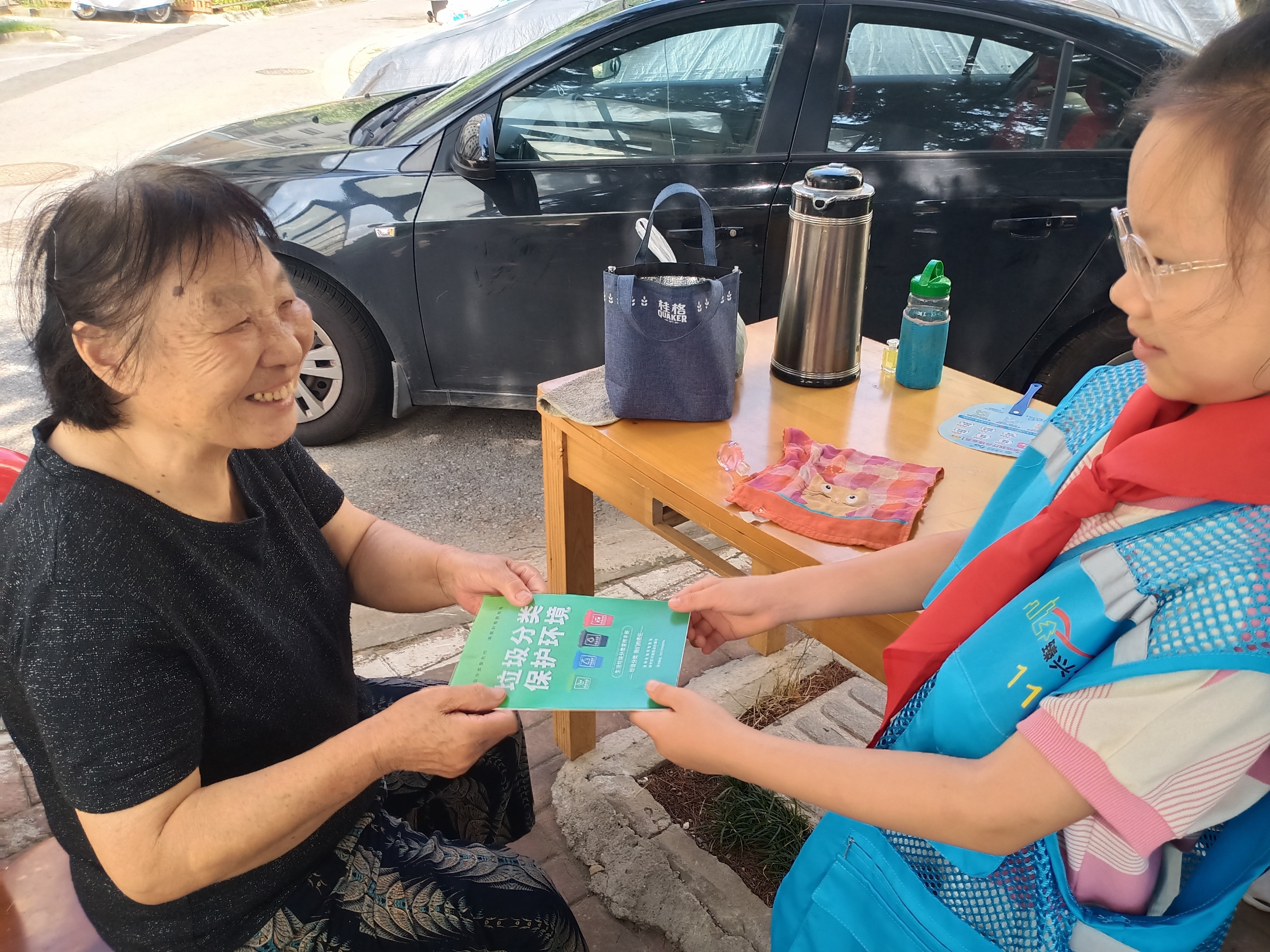 随后,青少年志愿者们分成二队,一支垃圾分类宣传小队,一支小区环境卫生清洁小队。宣传小志愿者们拿着垃圾分类宣传单页,向小区的叔叔阿姨们宣传起垃圾分类的重要性以及垃圾分类的方法。