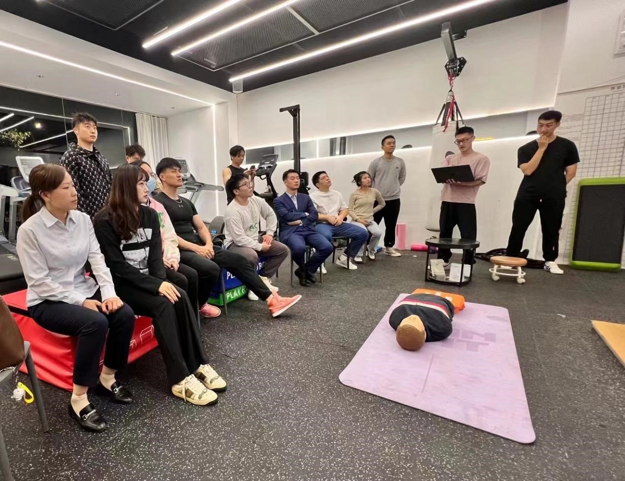 课程分为理论知识和实践模拟两个板块进行,理论知识充实,健身房老板在文字PPT上穿插动画效果,形象地展示了哪些患者需要急救、如何正确对患者进行急救、如何分辨海姆立克不同人群的急救方法等。实践模拟的感受更为直观,受邀前来的省人医急救医患人员为大家演示正确动作,他的演示严肃且专业,手臂打直,1001、1002、1003……他用力地按压模型的胸腔,仿佛真的在与死神做一场生死较量,在场所有人为之触动,学习了专业手法后纷纷上前实战练习,经过医护人员指导,大家的急救手法趋于专业。