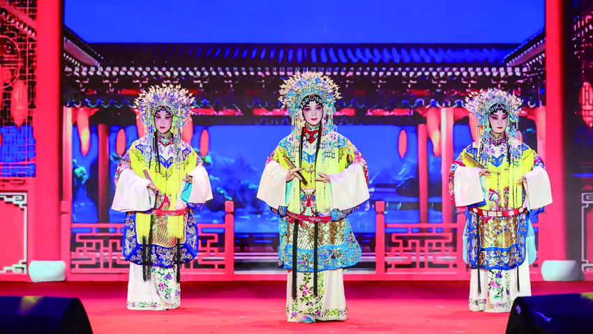 仪征市演艺影剧有限公司带来的《梨园集锦》热闹开场,迅速将现场观众带入传统戏曲艺术的瑰丽世界;中国曲艺牡丹奖获得者孙铭泽以快板书的独特节奏,将经典故事《哪吒闹海》演绎得张力十足、妙趣横生;柳琴戏《枣花》选段中,中国戏剧梅花奖获得者王晓红以动人唱腔,诉说乡土深情;中国戏剧梅花奖获得者许亚玲唱响《三拜堂》选段,让淮海戏的独特韵味沁入人心……