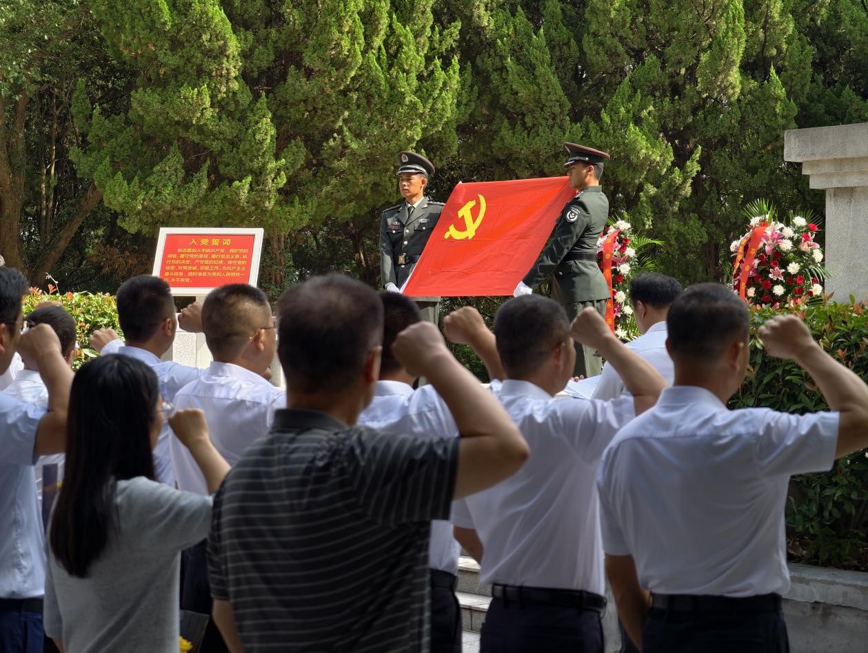 “我志愿加入中国共产党,拥护党的纲领,遵守党的章程……”革命烈士纪念碑前,全体党员面向鲜红的党旗,坚定地举起右拳,在革命烈士的注目下重温入党誓词,铮铮誓言响彻陵园,既是对革命先烈的承诺,也是对初心使命的坚守。