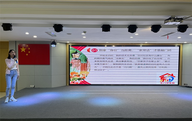“每一次走访、每发展一位支持者,都让我对做好群众工作有了更大的信心。”东井新村社区的李娜以独居的罗阿姨、翻新装修的罗老板和一位年轻妈妈的沟通为例,告诉小伙伴们“以心换心”才能凝聚更广泛的合力,让更多居民成为社区治理的“合伙人”。