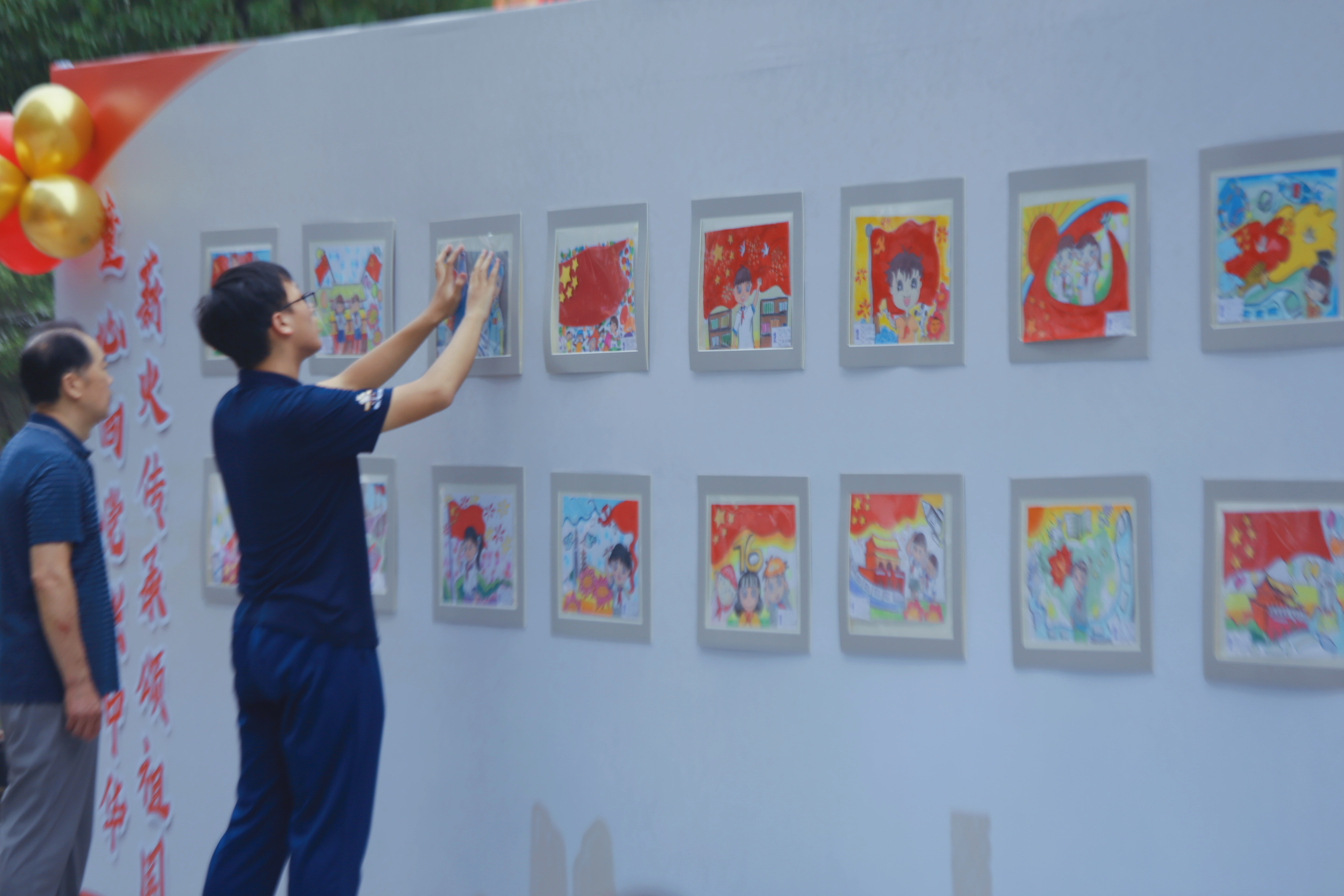 “童心向党”主题画展吸引了众多目光,孩子们用稚嫩画笔描绘出国旗、天安门等图案,纯真画卷表达着对祖国的热爱。现场设置的“祝福祖国”打卡点更是气氛热烈,居民们纷纷执笔留言,“祖国繁荣昌盛”“国泰民安”等真挚寄语贴满祝福墙,形成一道亮丽的红色风景。