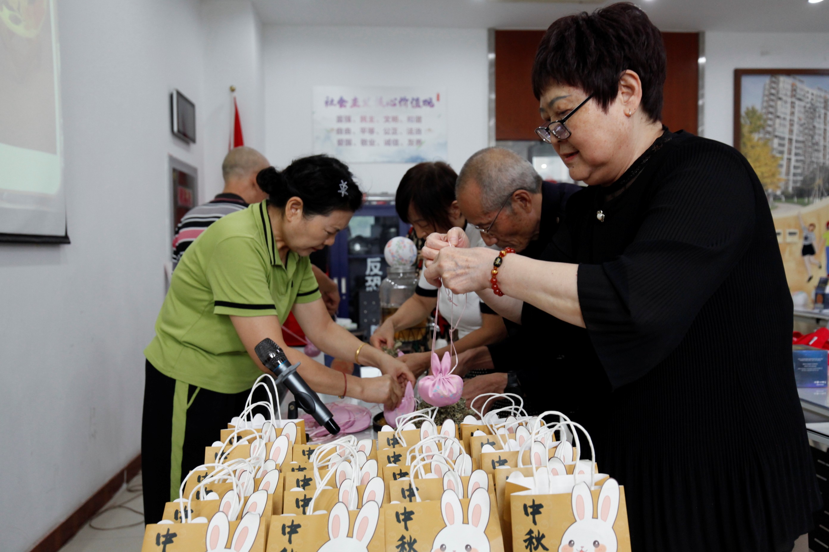另一边的中秋香囊制作区同样人气高涨。居民们根据自己的喜好搭配香料,不一会儿,一个个散发着清雅香气的香囊渐渐成型。不少人拿着亲手制作的香囊互相展示:“挂在包里既好闻,又藏着中秋的祝福。”活动尾声,居民们手捧亲手制作的月圆灯与香囊,脸上洋溢着满足的笑容。