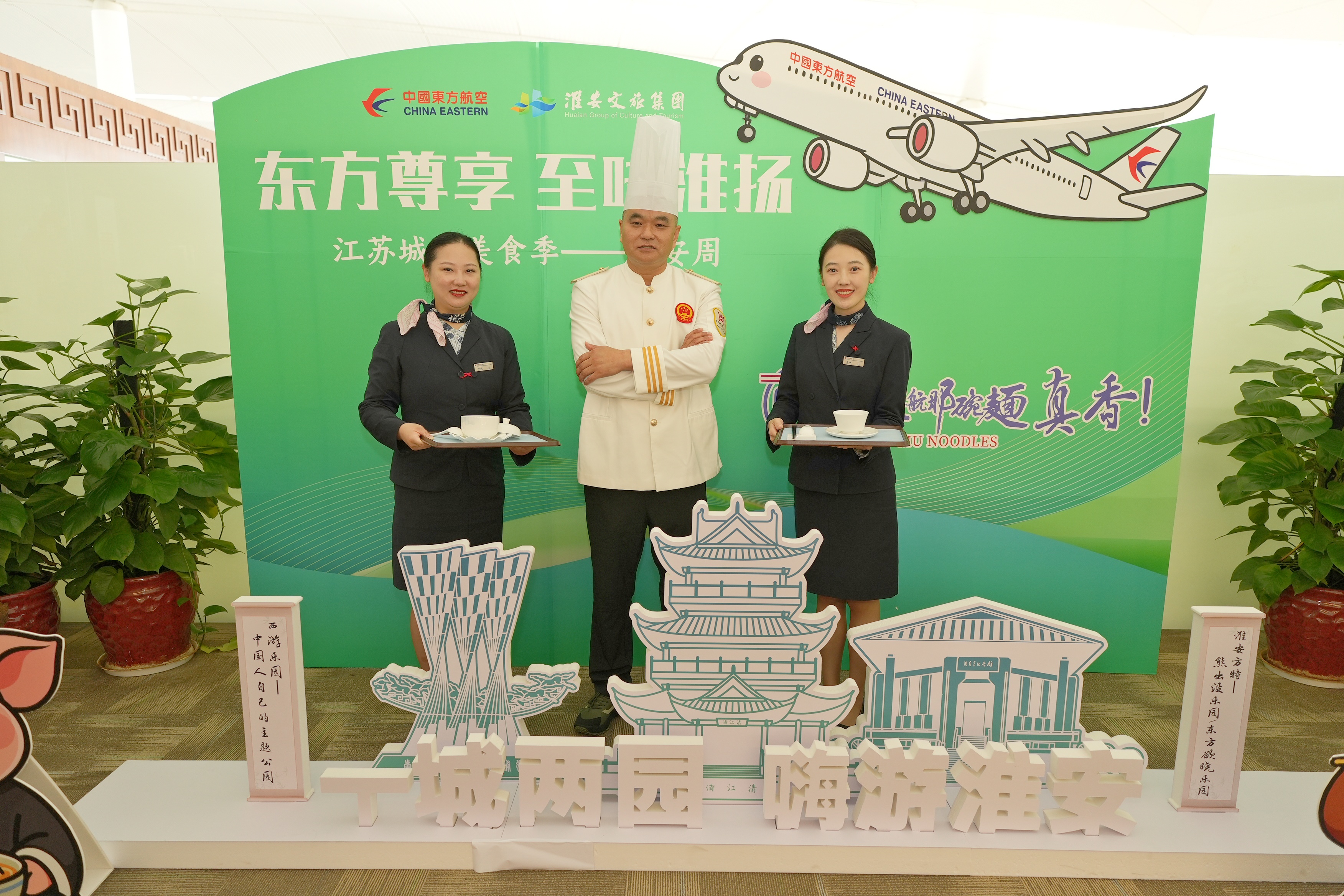 近日,东航江苏公司与淮安文旅集团合作主办的“东航江苏城市美食季——淮安周”活动在南京禄口国际机场T2东航贵宾休息室拉开帷幕。东航江苏公司、东部机场集团、淮扬菜集团相关负责同志参加了启动仪式。美食周活动由江苏航食公司与淮扬菜集团联合承办,将持续到10月8日,让广大旅客在国庆中秋假期乘机出行时,也能品尝到正宗的淮扬菜。