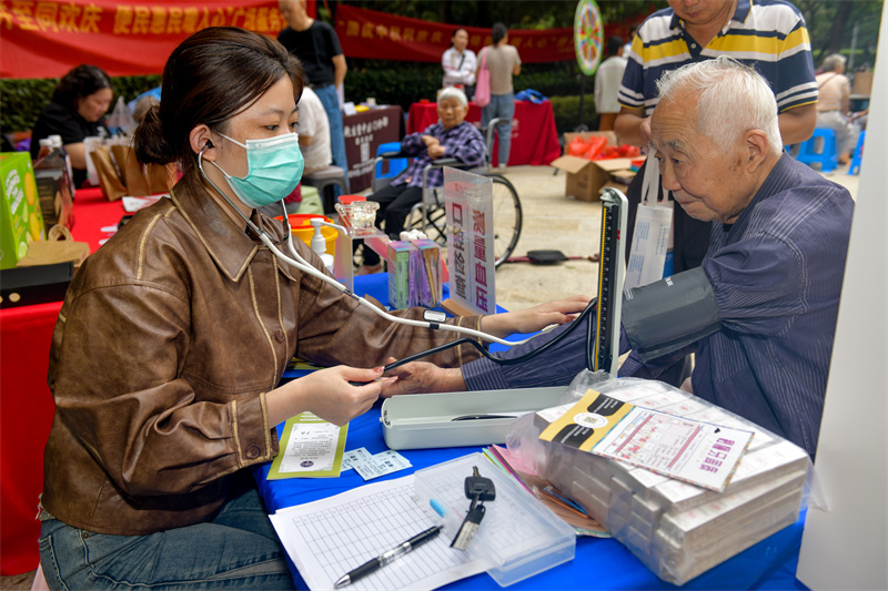 “健康关怀区”内,专业的医疗团队正耐心地为居民提供中医问诊、牙科检查、血压血糖测量等服务。网格志愿者此时又化身“健康助理”,引导居民有序排队,将医生的健康建议详细告知咨询的居民。“阿姨,您的血压有点偏高,平时饮食要清淡些。”网格志愿者轻声叮嘱着。基于网格服务的精准关怀,直接送达居民身边。