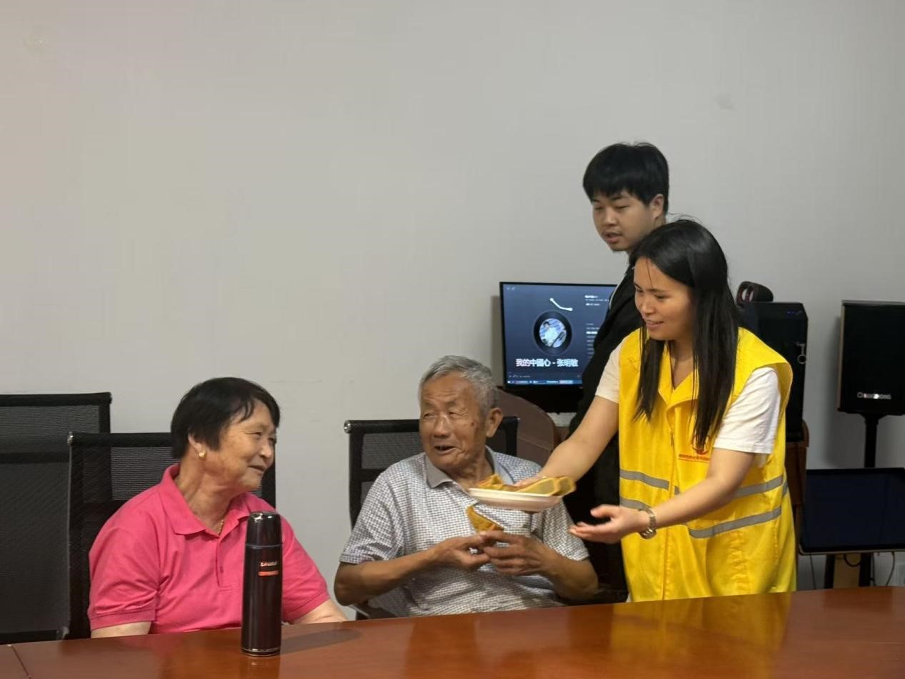 灯笼制作意犹未尽,分享团圆月饼的环节将活动推向高潮。当志愿者推出这份象征着团圆美满的节日礼物时,现场响起阵阵欢呼。在温馨的乐曲声中,志愿者带领居民共同切开月饼,并将这份甜蜜与祝福分发给每一位在场居民。大家品尝着香甜的月饼,交流着制作灯笼的心得,畅谈着社区的变化,浓浓的邻里情在欢声笑语中不断升华。