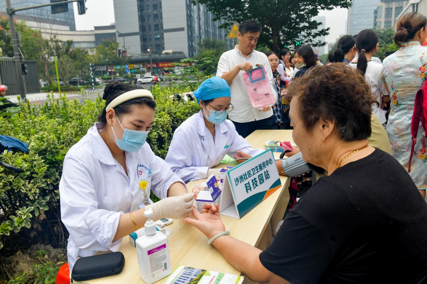 浙江稠州银行南京建邺支行带来的免费磨刀、理发服务,让居民在家门口享便捷,也让节日的关怀融入日常点滴。沙洲卫生服务中心科技园站的义诊点同样人气十足,医护人员耐心为居民测血压、解健康疑问,用专业与关怀守护邻里健康,将温暖的服务直接送到了社区居民身边。
