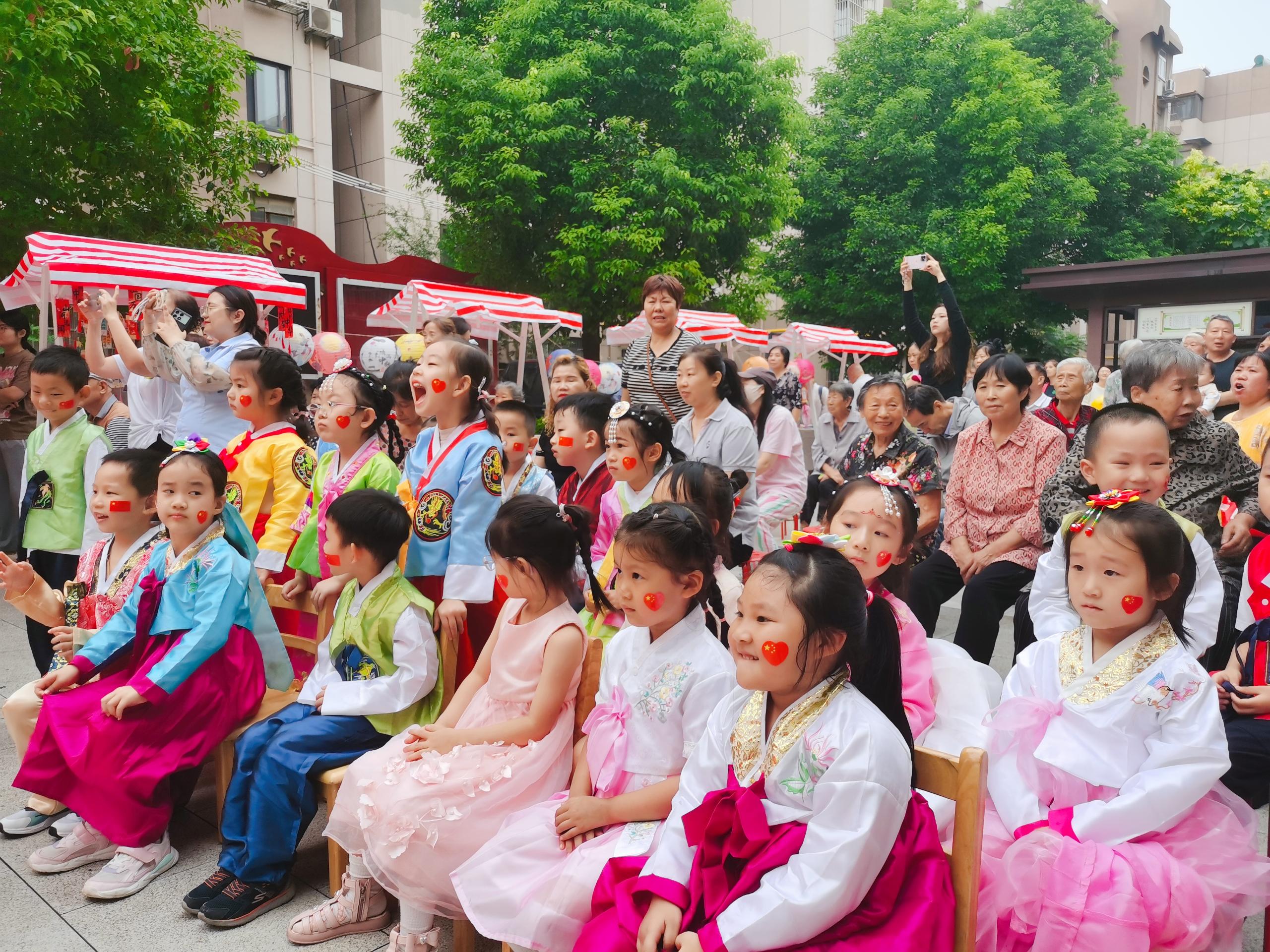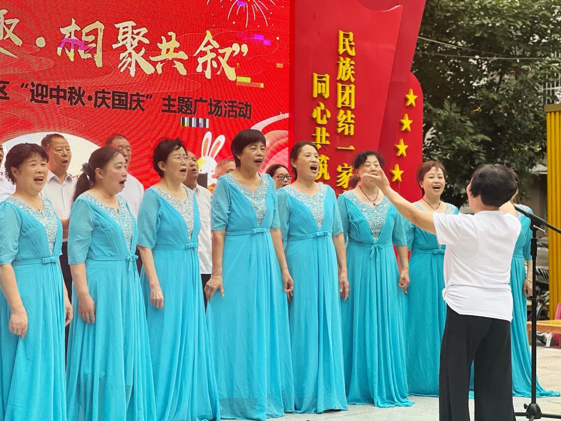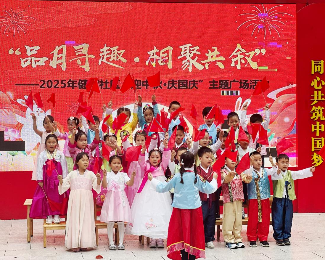 在知识问答环节,题目涵盖了傣族“拜月”、朝鲜族“秋夕”等民族中秋习俗以及传统中秋知识,居民们踊跃参与,在趣味答题过程中加深了对多民族中秋文化的认识。大合唱《长江之歌》以恢弘的旋律,抒发了各族居民对祖国的热爱之情。舞蹈《我和我的祖国》《万疆》用优美的肢体语言,将家国情怀与民族自豪感展现得淋漓尽致;南苑幼儿园小朋友们带来的《强国战歌》,以稚嫩却坚定的表演,展现了新一代对祖国的崇敬。