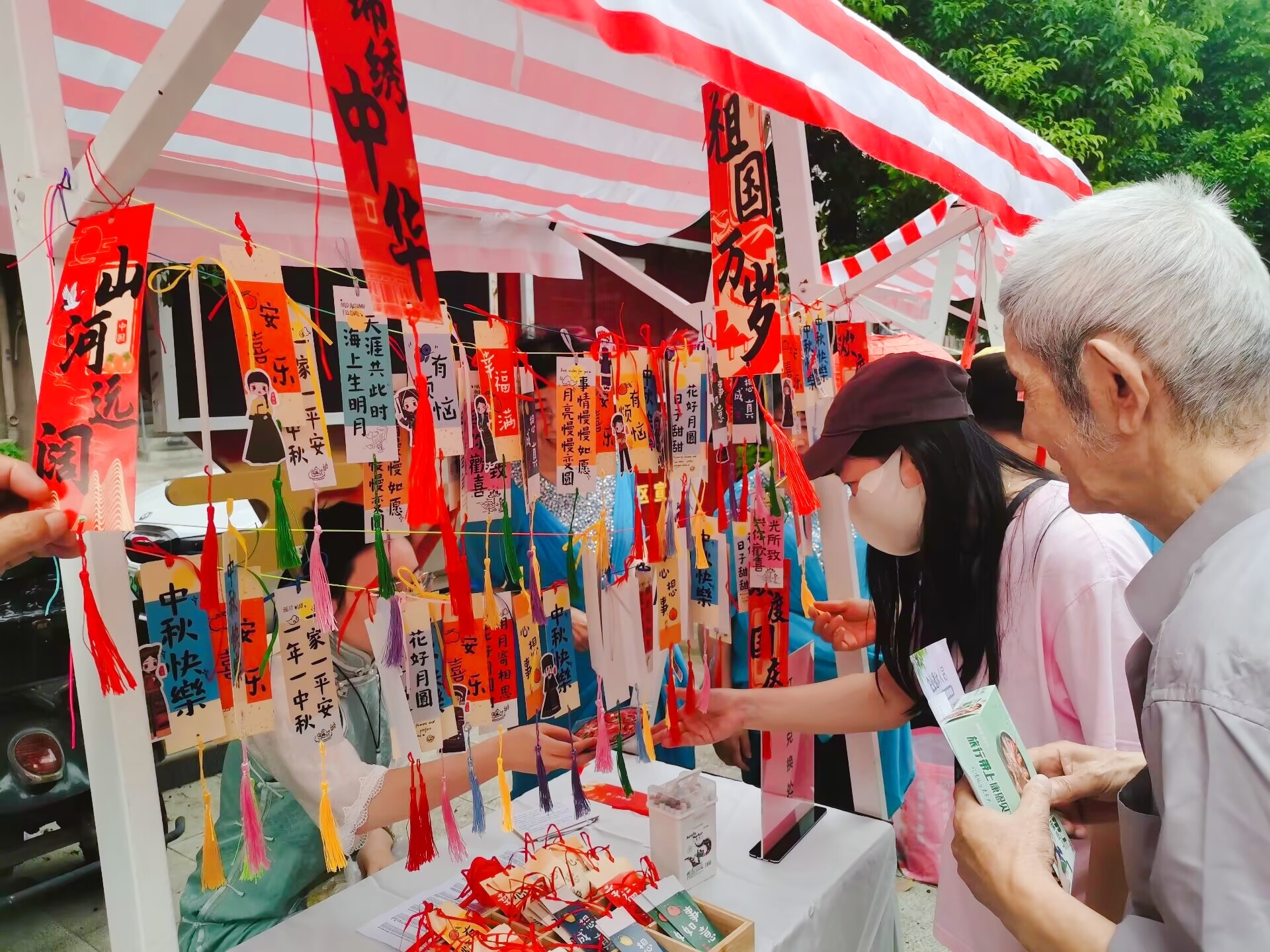 多元体验绘就中秋画卷,便民服务暖人心扉。中秋文化摊位体验区成为活动的又一亮点。在民族祈福许愿墙前,居民们在带有各民族文字或图案的祝福卡上写下心愿,感受不同民族的祈福文化;在特色月饼DIY体验摊位,居民们亲手制作特色月饼,将心意融入香甜的饼皮之中;“品桂花茶,尝多民族特色月饼”的美食体验区,桂花茶的清香与蒙古族奶皮子月饼、回族五仁月饼等多民族风味月饼的醇厚相互交织,让居民们尽享味蕾盛宴;民族元素灯谜会的灯笼上,涵盖民族乐器、服饰等元素的谜题趣味十足,猜对即可兑换民族图案礼品;玉兔套萝卜、民族投壶等游戏体验区更是热闹非凡,居民们在游戏中收获奖品的同时,也收获了欢乐。