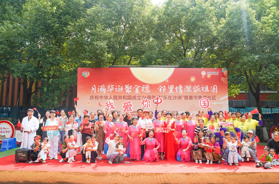 江南时报讯 金秋送爽迎华诞,丹桂飘香颂祖国。为热烈庆祝中华人民共和国成立76周年,喜迎中秋佳节,弘扬传统文化,传递公益爱心。2025年9月28日上午,金穗花园社区成功举办“月满华诞聚金穗 邻里情深颂祖国”主题庆祝活动暨“乐在沙洲”慈善市集进社区活动,本次活动集文艺汇演、慈善义卖、健康服务、非遗体验与互动宣传于一体,吸引了众多社区党员和居民热情参与。