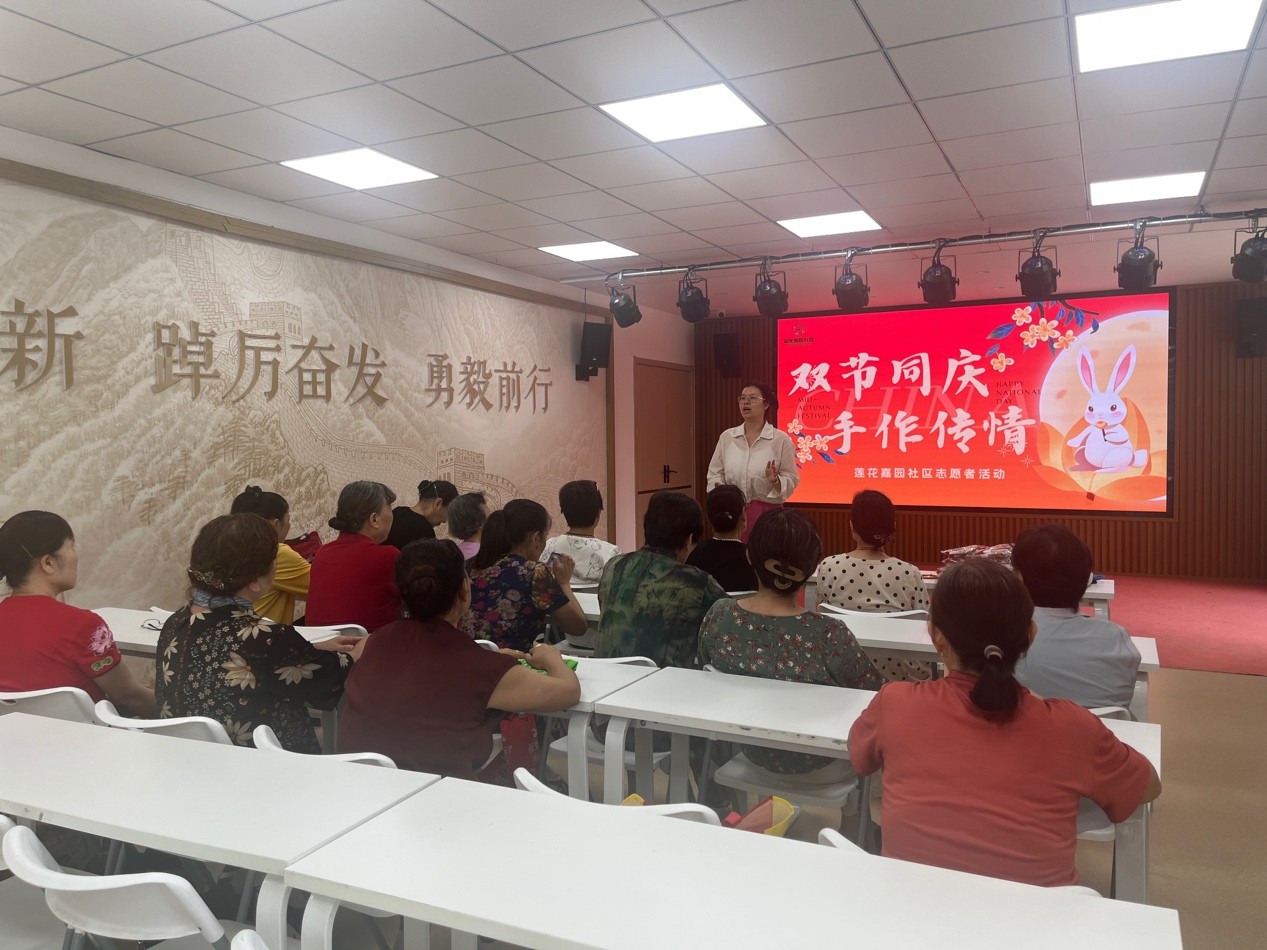 江南时报讯 金秋送爽,丹桂飘香,在国庆与中秋双节来临之际,为丰富社区居民文化生活,向长期扎根社区、默默奉献的社区骨干与志愿者致以诚挚感谢,近日,南京市建邺区沙洲街道莲花嘉园社区在二楼嘉“he”小剧场成功举办“双节同庆 手作传情”主题活动,16名社区骨干与志愿者齐聚一堂,以手作寄心意,以交流话温情,共同迎接双节到来。