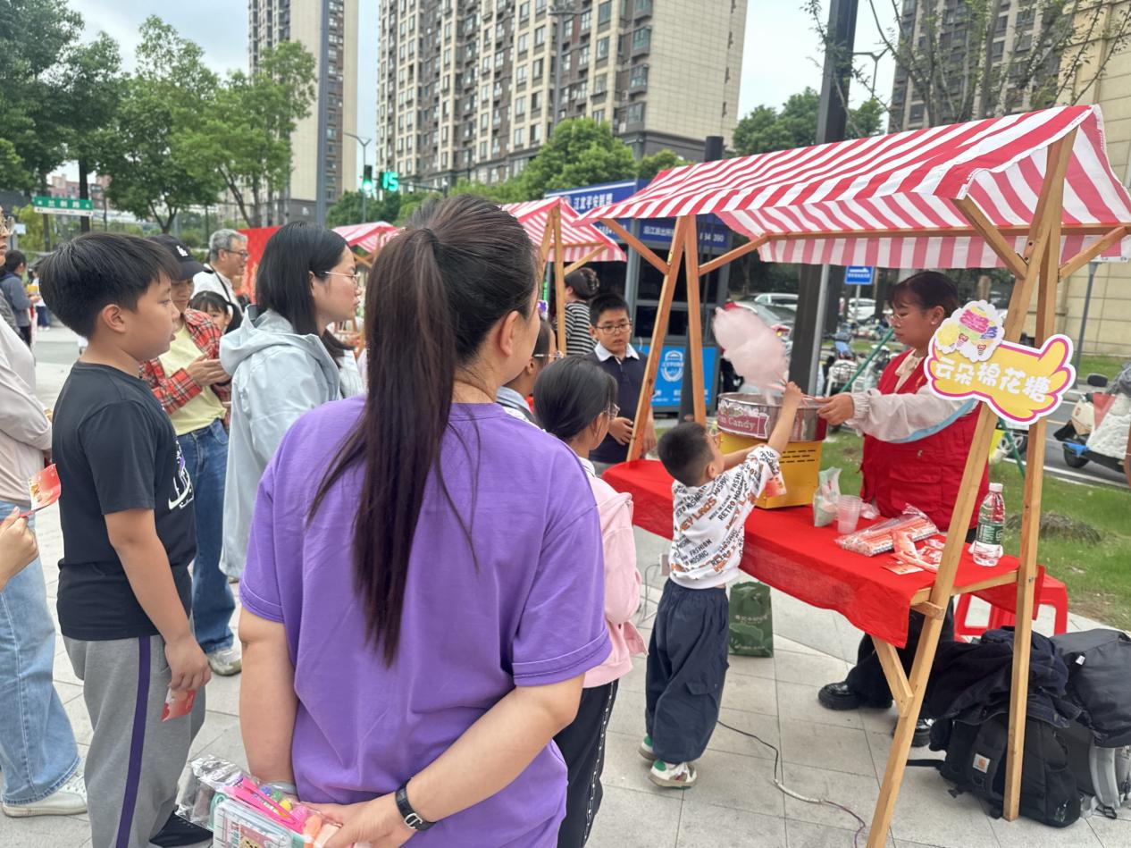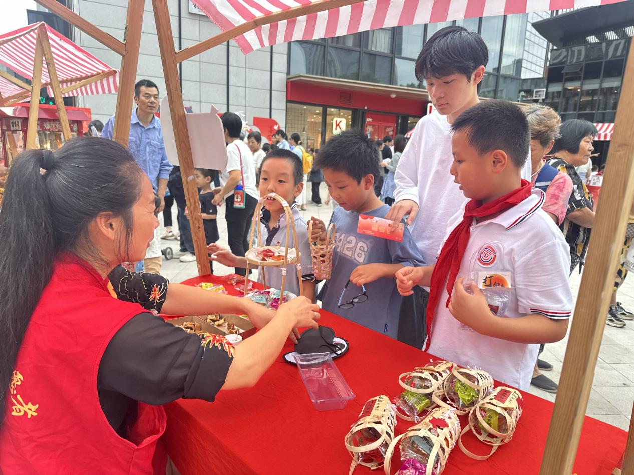 美食互动,舌尖盛宴,情暖团圆。美食区的香气早已飘满广场,成为市集最具“烟火气”的角落,为居民带来满满的甜蜜体验。爆米花机“砰砰”作响,金黄酥脆的爆米花刚出锅就被一抢而空,捧着爆米花的孩童蹦蹦跳跳,笑声清脆。棉花糖摊位前更是排起长队,师傅手腕轻转,白砂糖便化作轻盈柔软的“云朵”,裹上彩色糖粒后,宛如绽放的彩虹,一口下去便唤醒了几代人的童年记忆。“喜月相伴”中秋月饼猜猜乐环节更添节日趣味。长桌上整齐摆放着各种口味的月饼,居民凭口感猜测口味,猜中即可获得小惊喜,猜中者接过小礼品时满脸笑意,没猜中也笑声不断,浓郁的节日氛围在味蕾的碰撞中愈发浓厚。“趣味比拼”区域以经典游戏为纽带,拉近邻里距离。“投壶夺彩”项目前,居民排队尝试瞄准投掷,投中箭支的瞬间收获阵阵欢呼;“好运骰子”游戏则充满未知乐趣,居民掷出骰子,把对应不同的“好运”带回家。