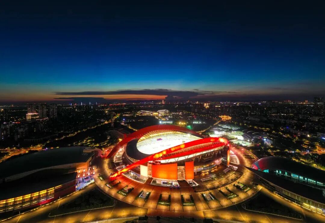 10月4日,“苏超”首场四分之一决赛在建邺区奥体中心上演,南京队坐镇主场迎战连云港队,吸引了61355名球迷现场观赛,再次刷新赛事单场上座率纪录。一街之隔的银杏里文化艺术街区作为“第二现场”,灯光璀璨,大型屏幕前座无虚席,球迷们手持旗帜和荧光棒,为喜爱的球队呐喊助威。